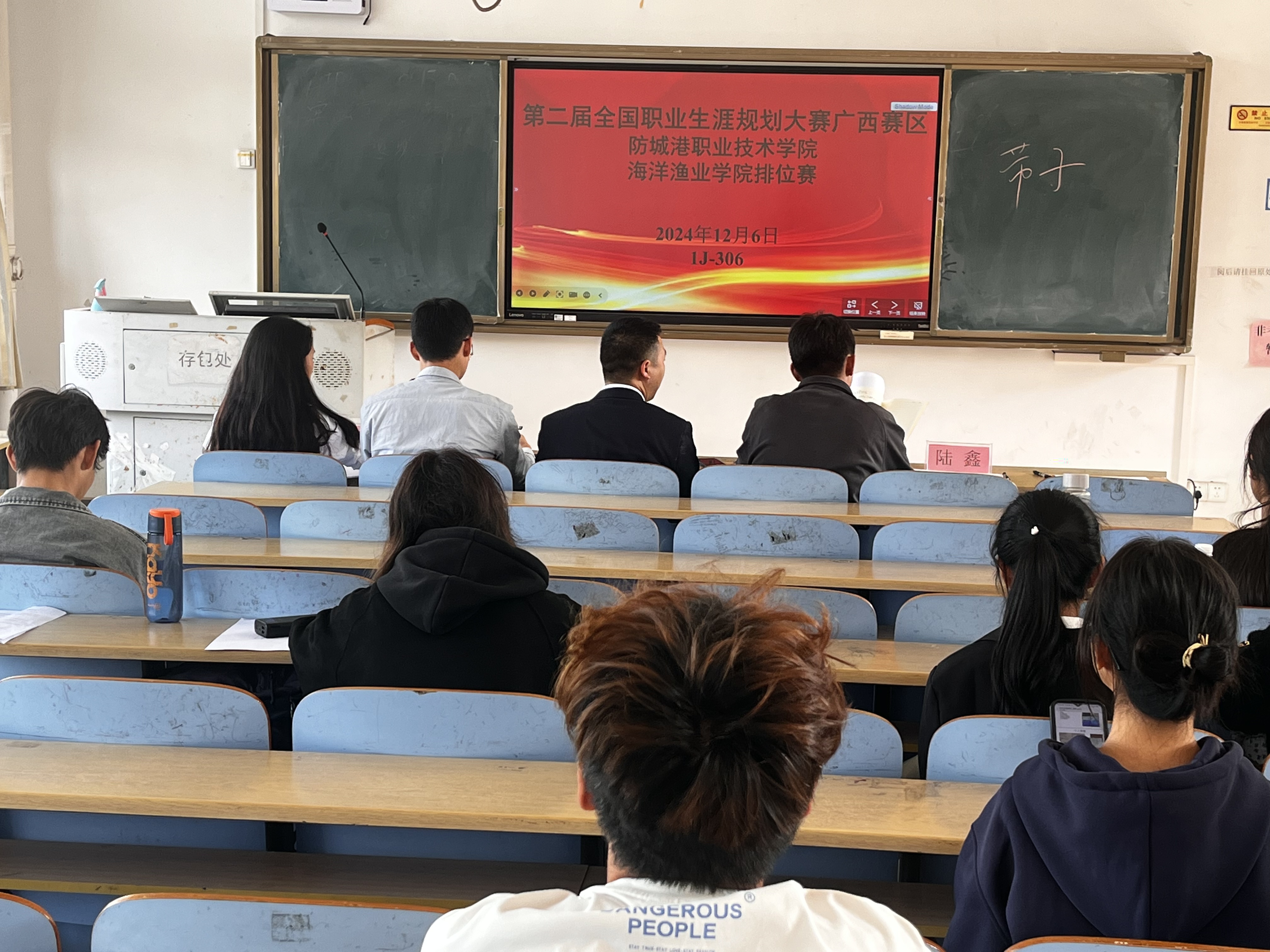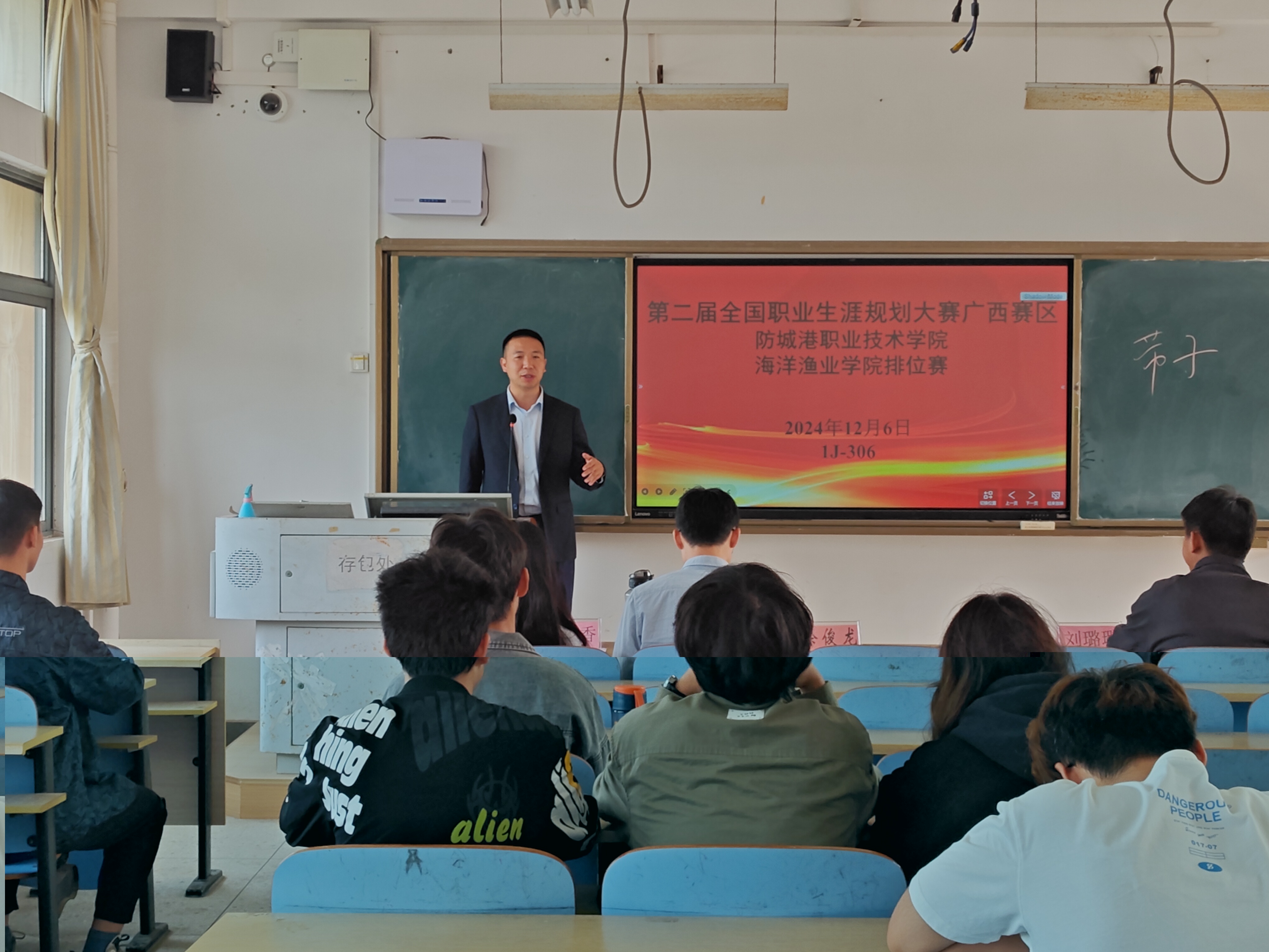 12月6日,海洋渔业学院在一教306举行了第二届全国大学生职业规划大赛广西赛区防城港职业技术学院院级排位赛,海洋渔业学院副院长徐俊龙及学院专任教师代表担任评委。