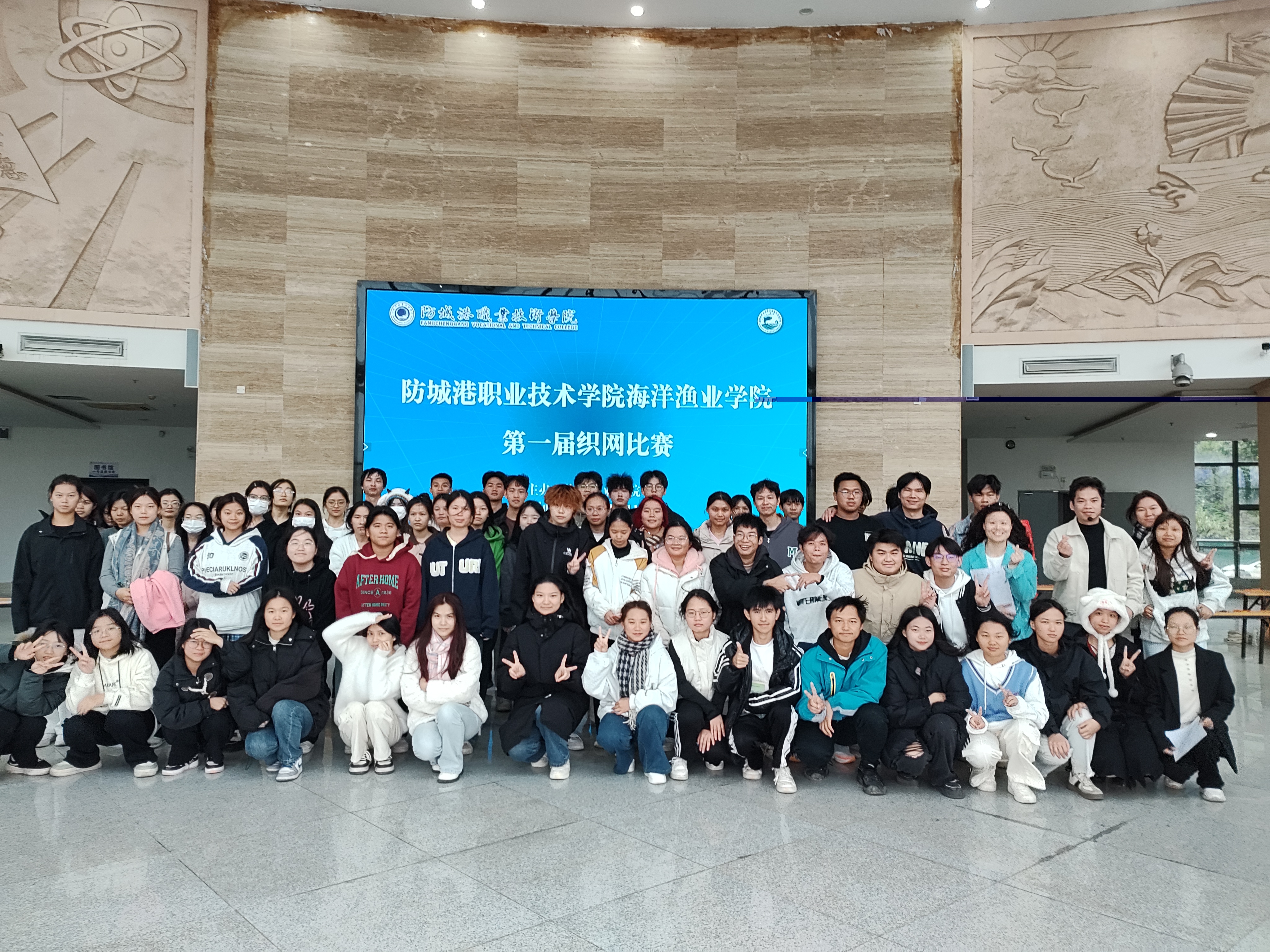 为响应防城港职业技术学院第二届校园体育文化艺术节,激发学生对水产知识的兴趣,提升专业技能知识,12月11日,海洋渔业学院在图书馆一楼大厅举行了第一届织网专业技能比赛,学院水产养殖专任教师代表担任评委,学院2023级、2024级共66名学生参加比赛。