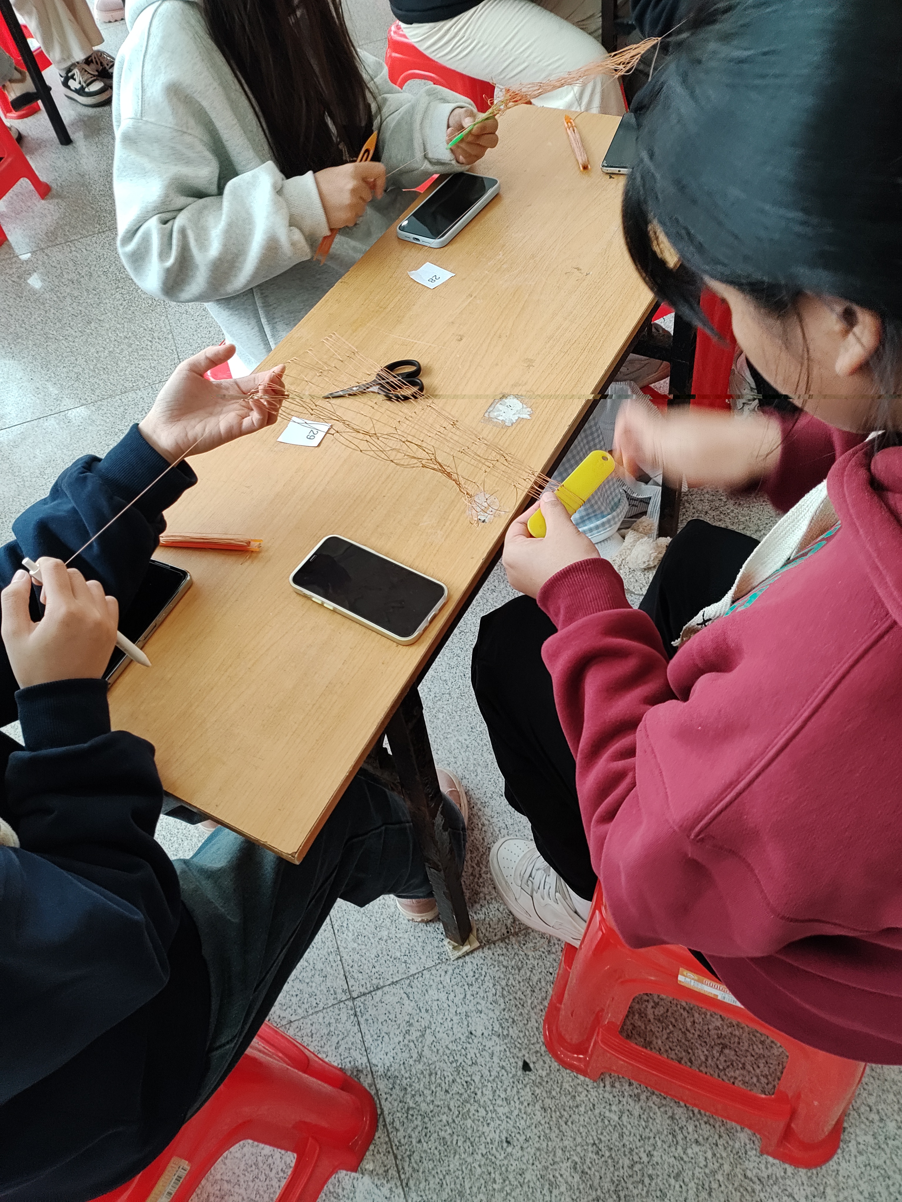 比赛由每2名学生组成一个小组进行现场织网,以一小时为限,比赛结束后小组提交所织渔网作为参赛作品,评委们从所织渔网的面积、网眼结实、网眼均匀程度等方面进行考核评分。比赛过程中,同学们认真地编网、打结、剪裁,竭尽全力展现课堂上学到的水产专业技能。通过激烈的比赛,角逐出了一等奖3组、二等奖5组、三等奖9组。