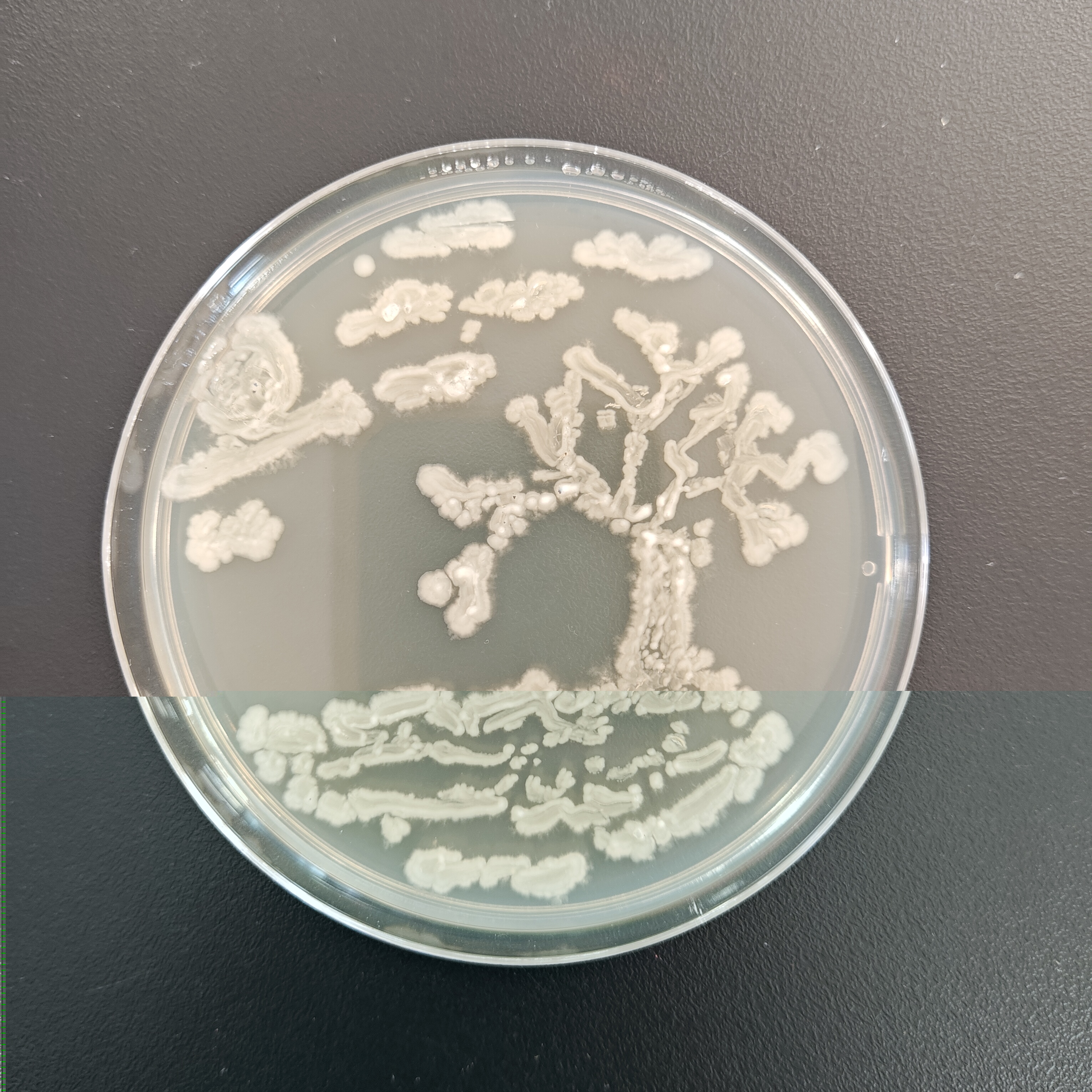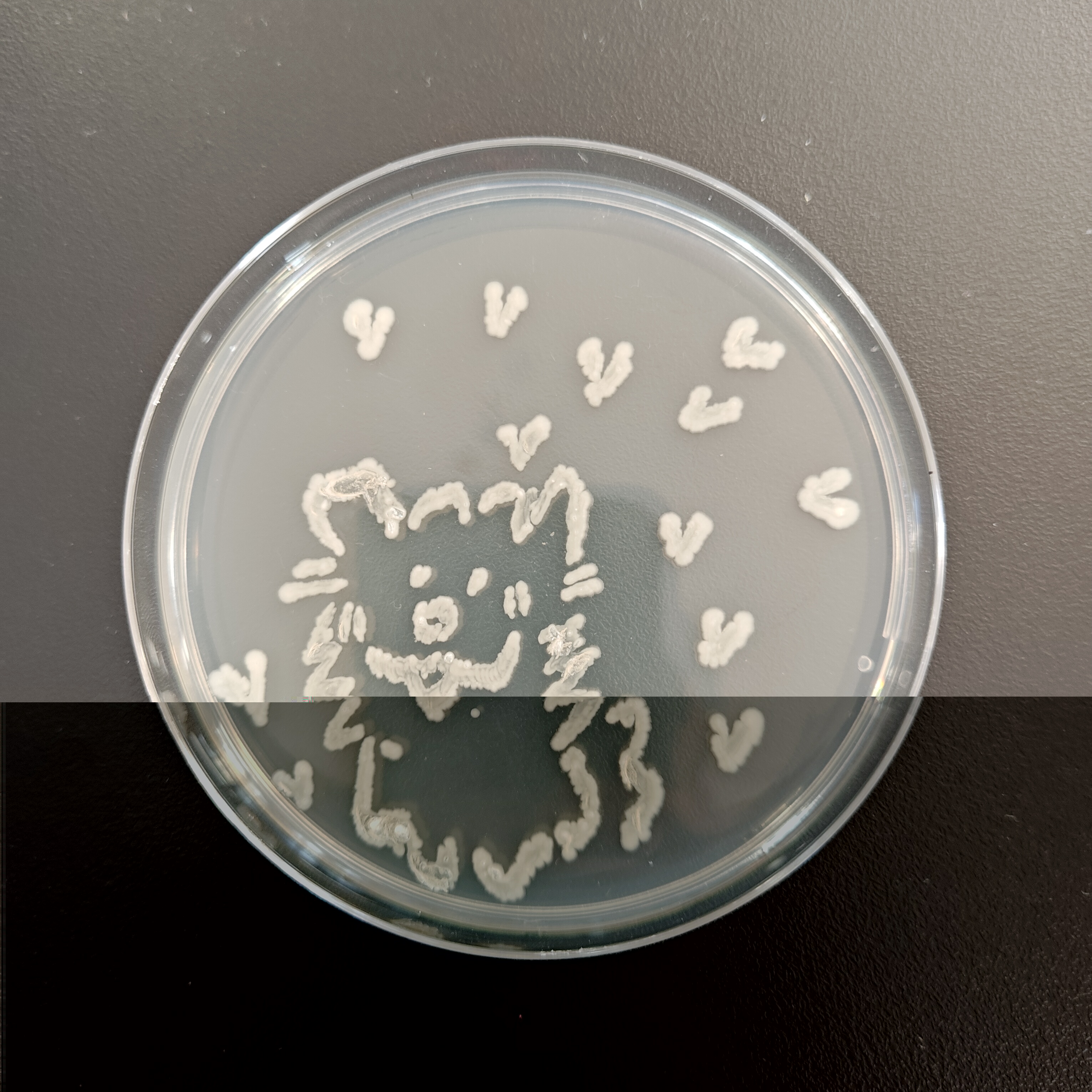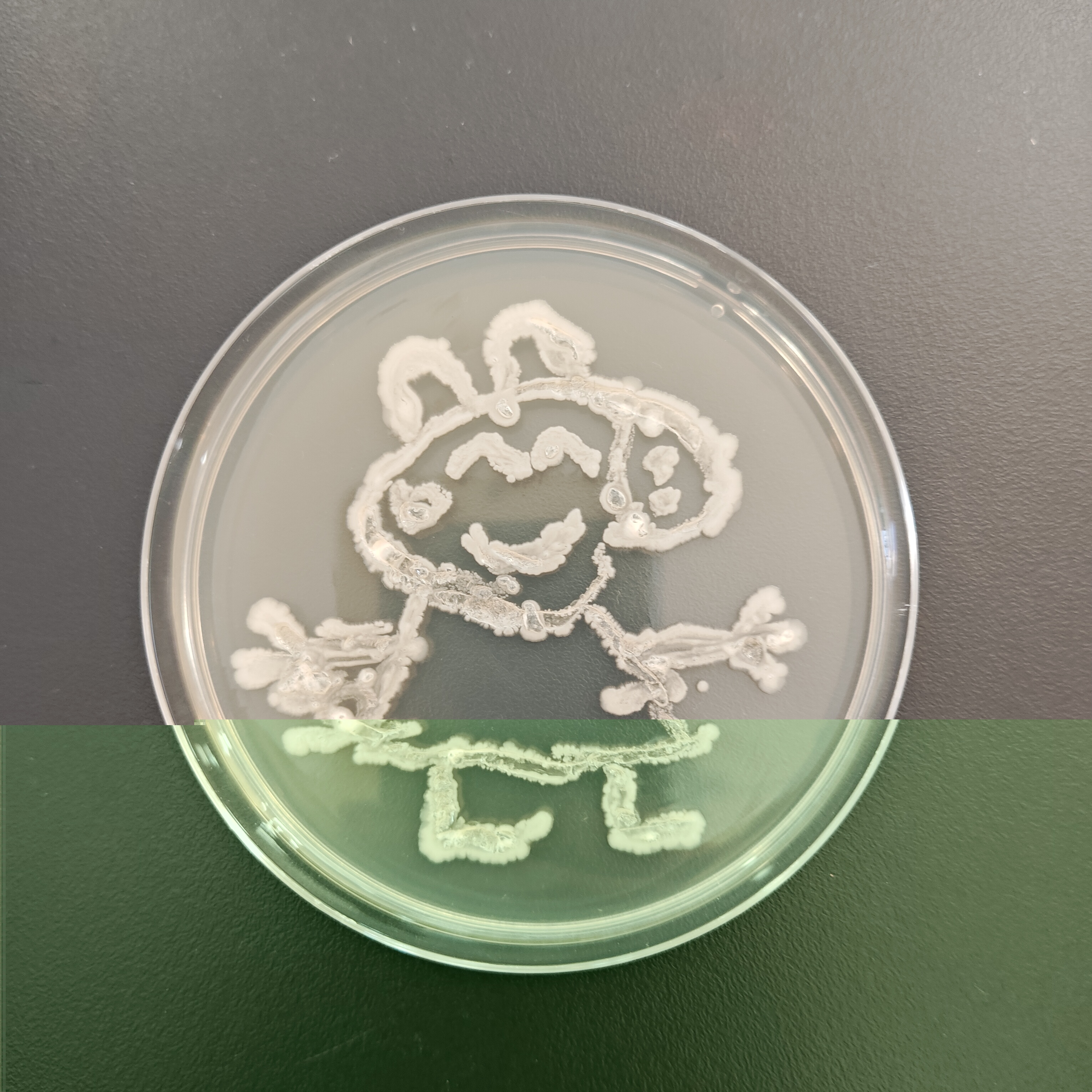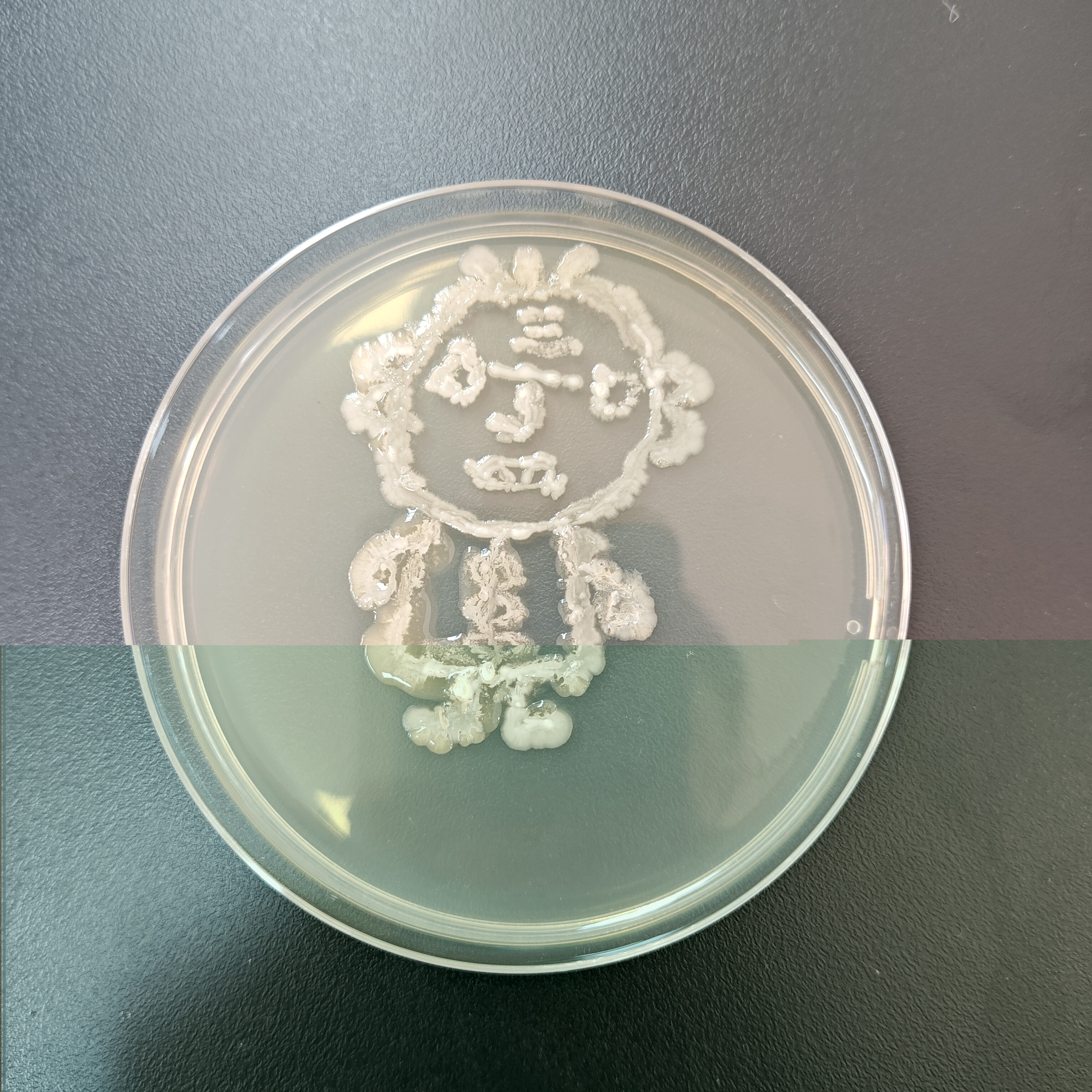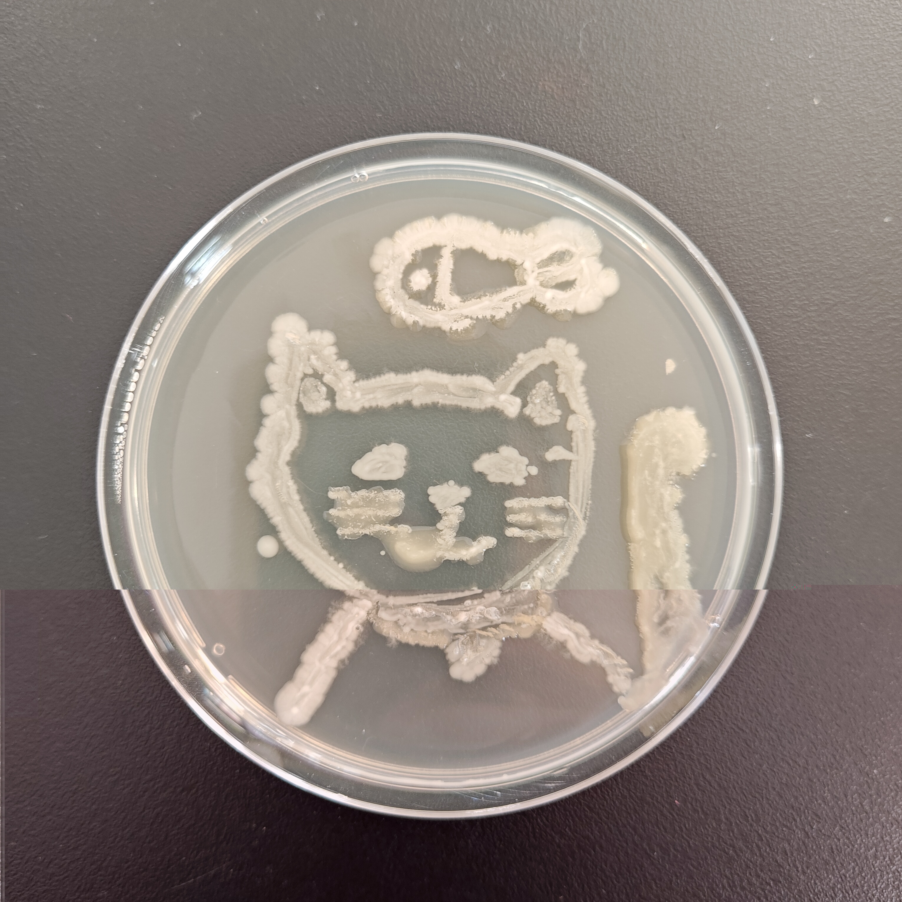 12月18日比赛当天,每3名同学组成一个小组,制作培养皿后,在超净工作台上进行操作。同学们以接种环作为“画笔”,挑取菌种——如乳酸菌、酵母菌等作为“颜料”,在培养皿上进行自由绘画创作。同学们凭借实验课积累的操作经验,自行掌握菌体的浓度,细致地勾勒出图案形态。绘画完毕,作品被放入恒温箱培养12个小时。次日,评委们通过观察作品长出的颜色及形态,并综合此前同学们的实验操作过程,依次对作品进行评分。