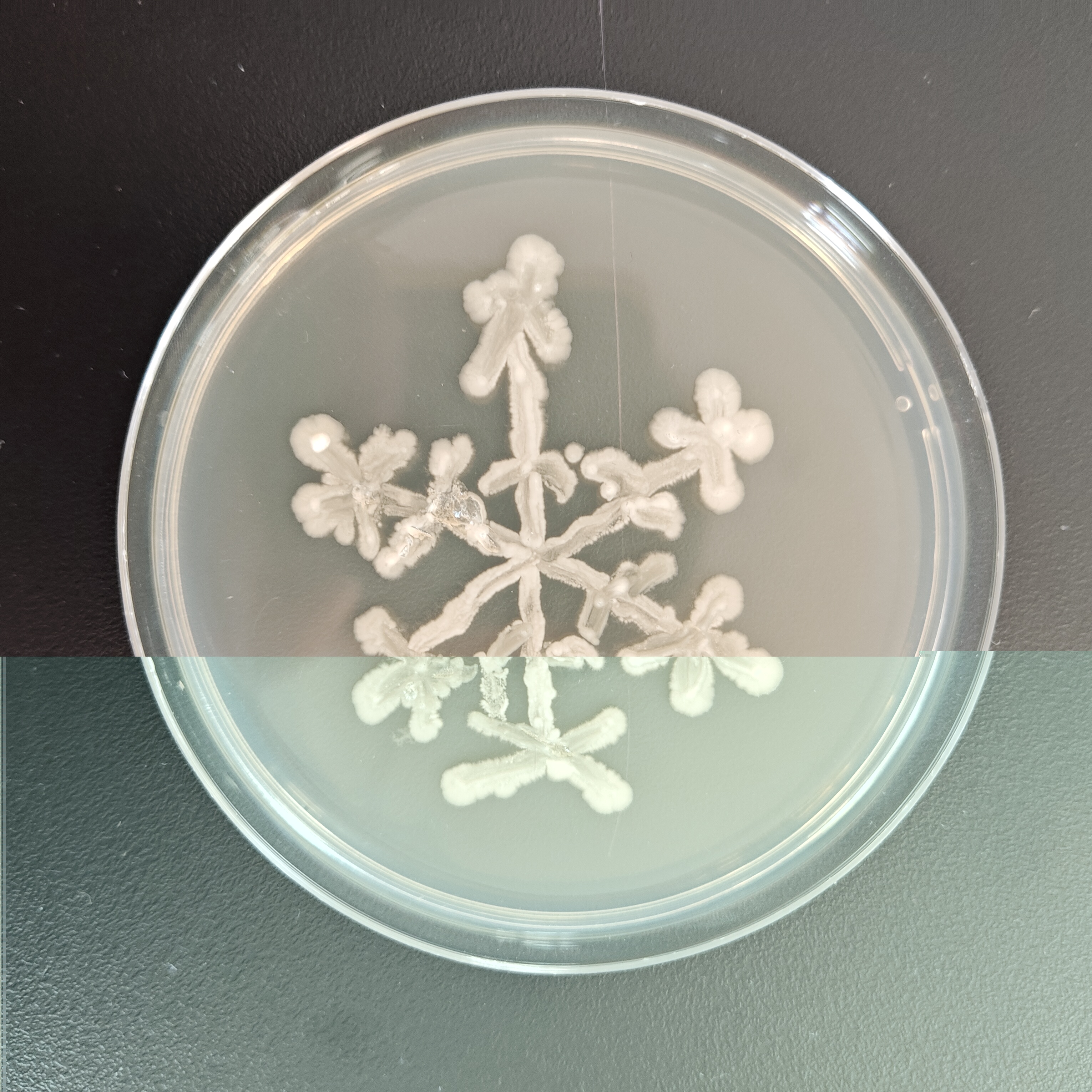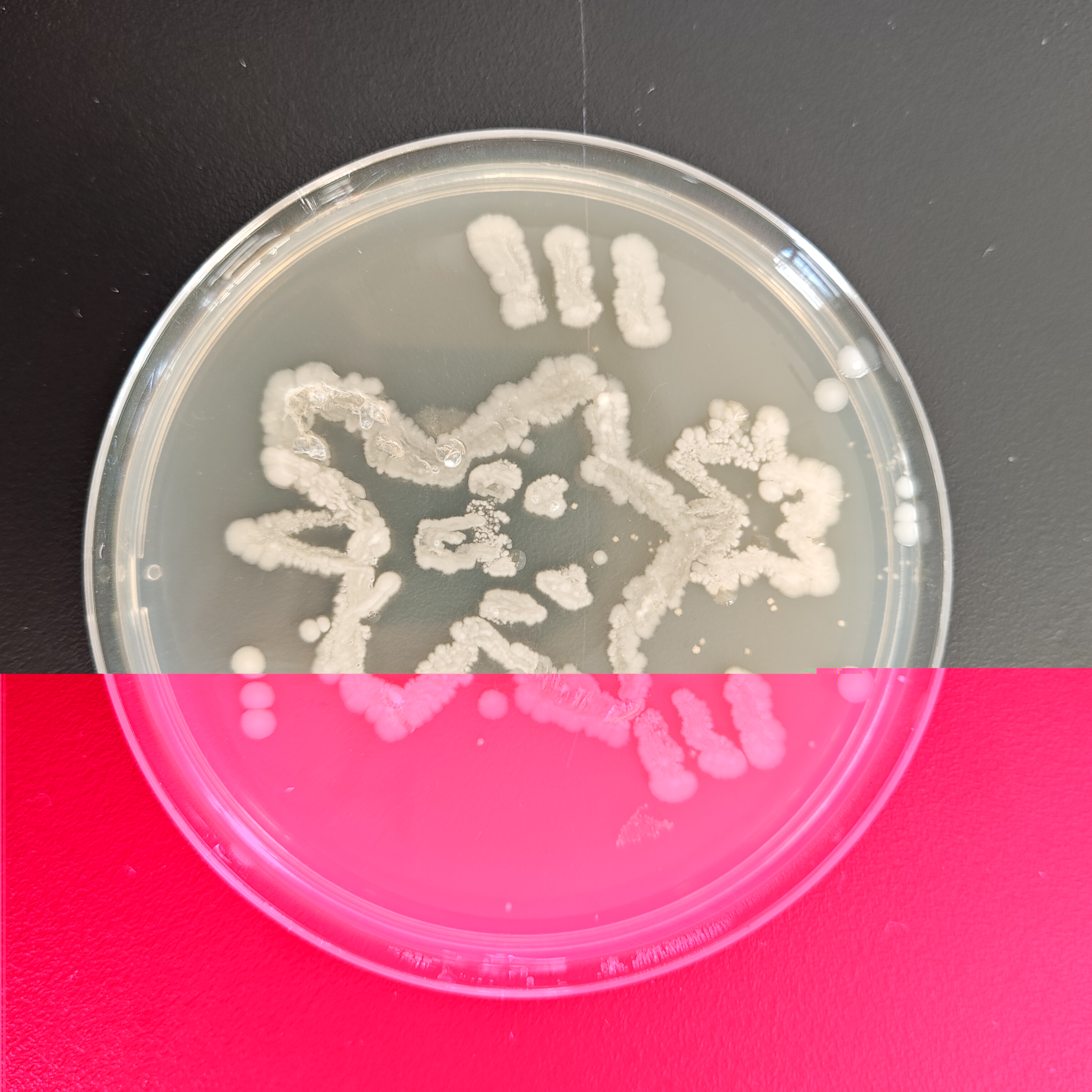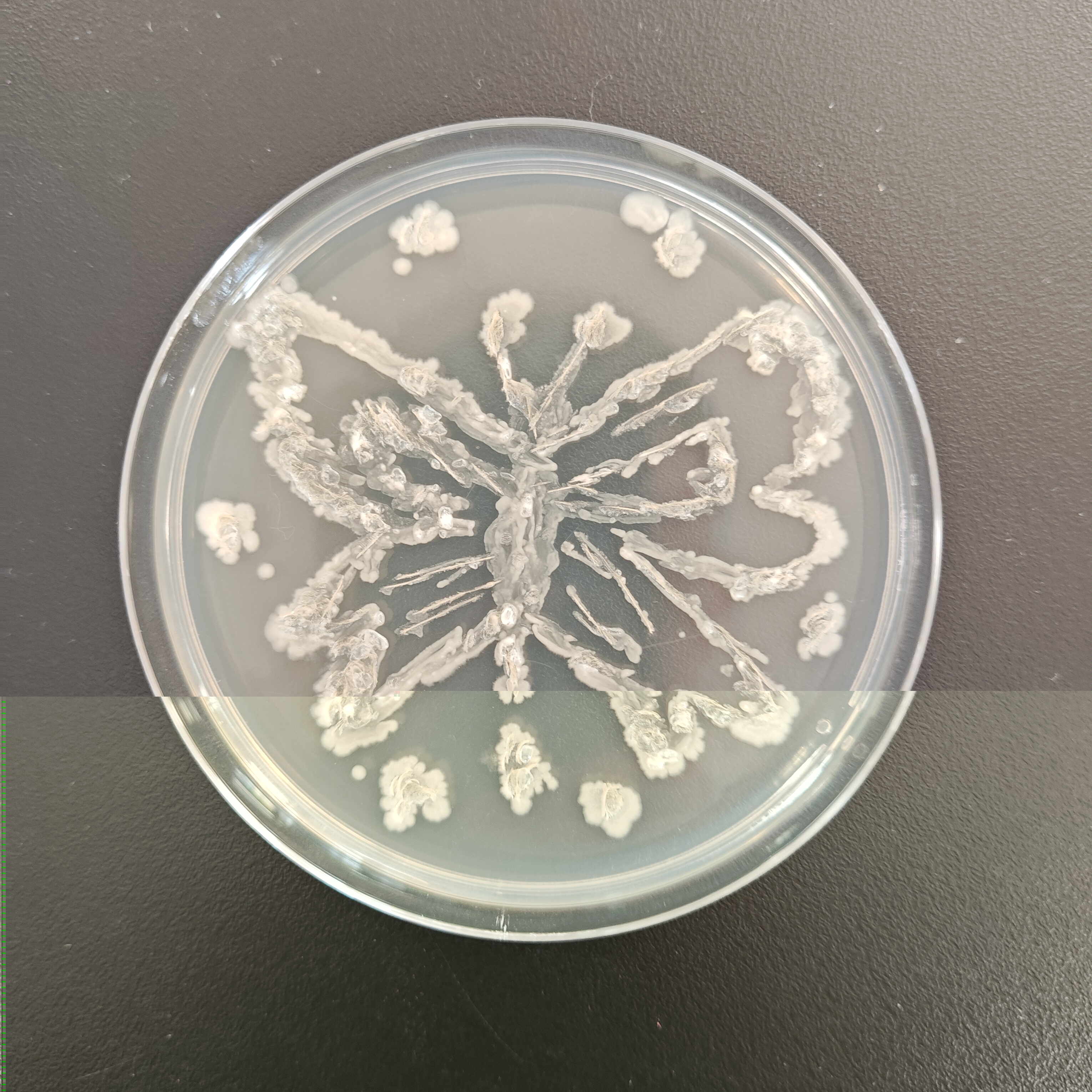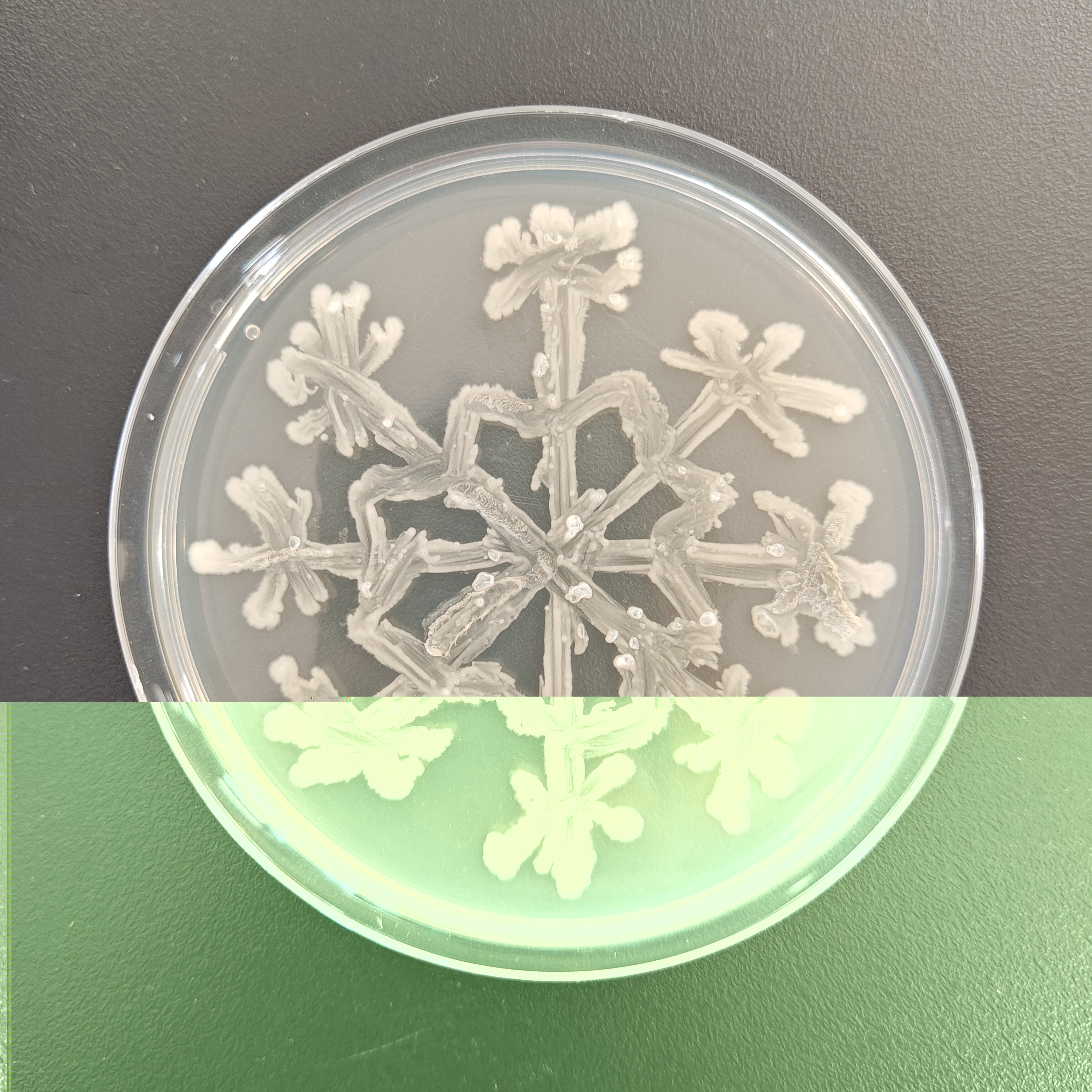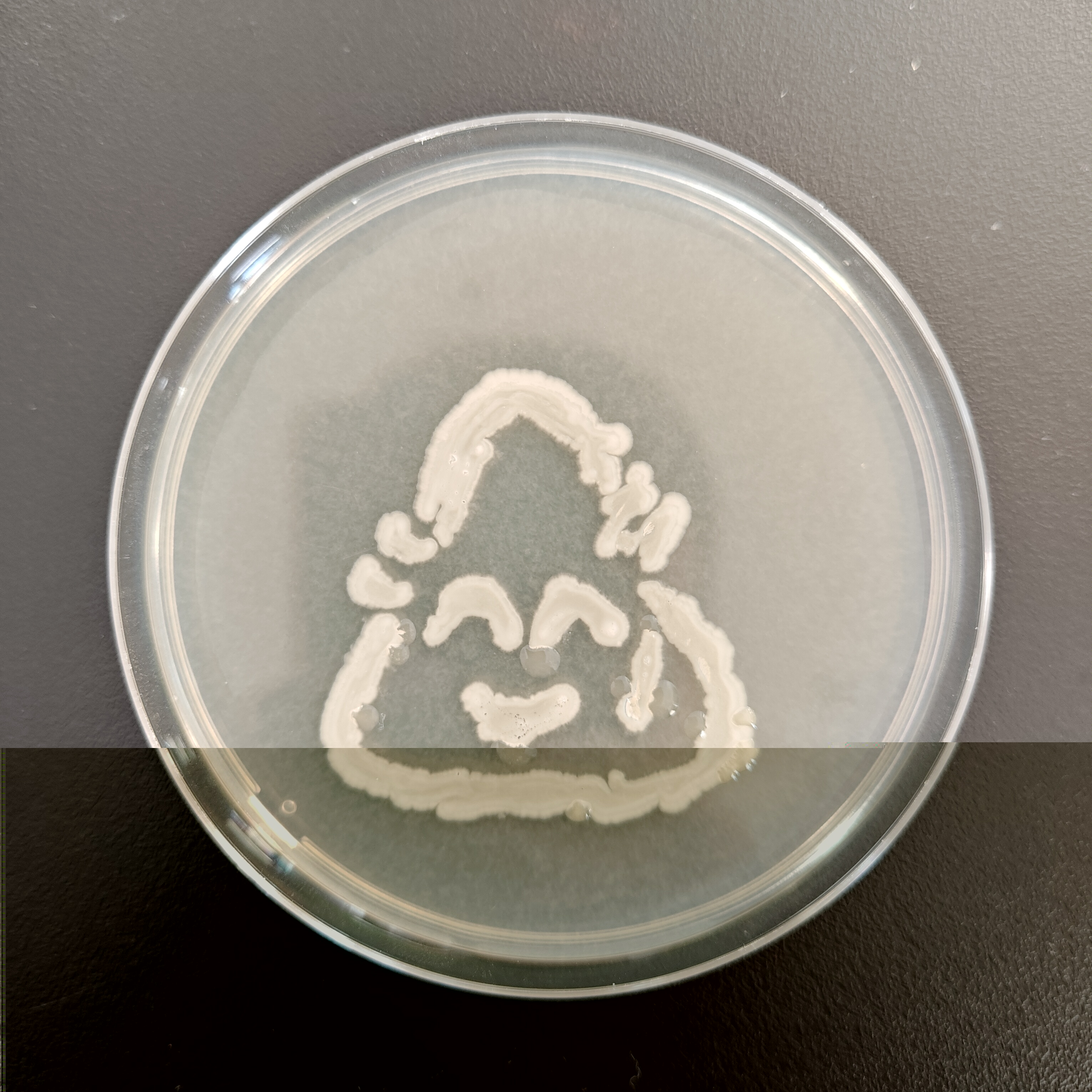 12月18日比赛当天,每3名同学组成一个小组,制作培养皿后,在超净工作台上进行操作。同学们以接种环作为“画笔”,挑取菌种——如乳酸菌、酵母菌等作为“颜料”,在培养皿上进行自由绘画创作。同学们凭借实验课积累的操作经验,自行掌握菌体的浓度,细致地勾勒出图案形态。绘画完毕,作品被放入恒温箱培养12个小时。次日,评委们通过观察作品长出的颜色及形态,并综合此前同学们的实验操作过程,依次对作品进行评分。