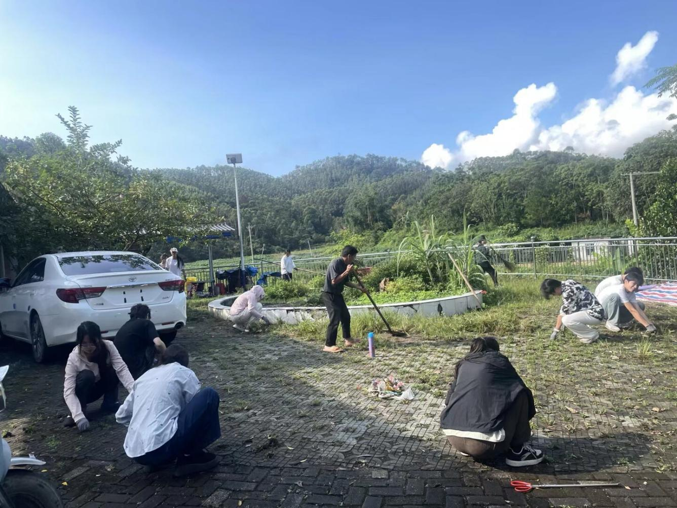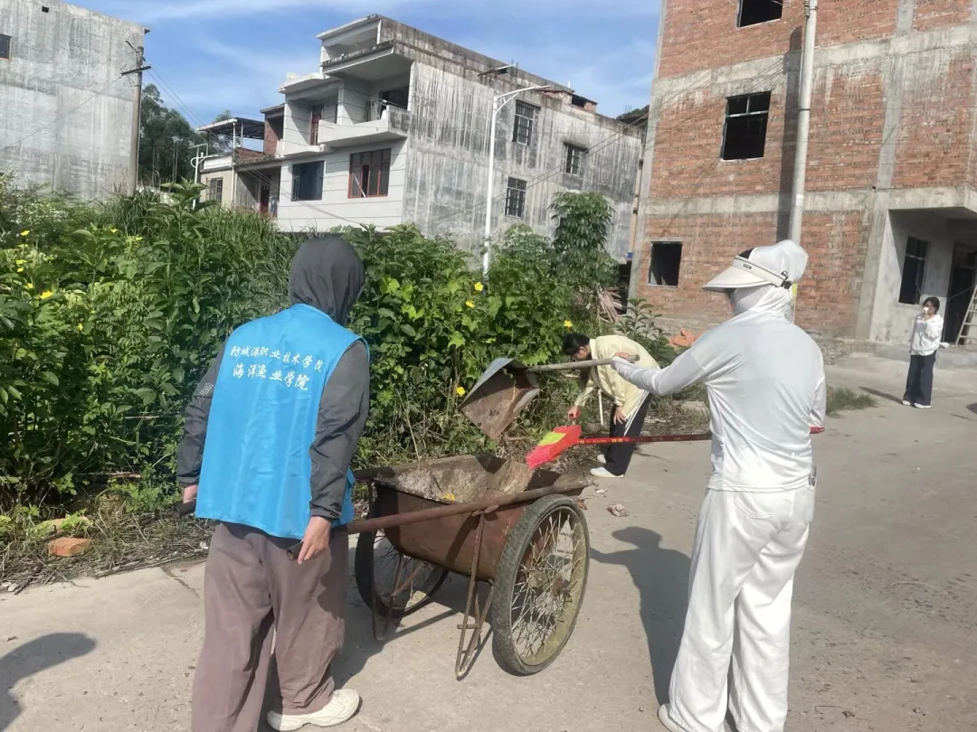 “蔚蓝逐梦 渔跃先锋”服务团在防城港十万山瑶族乡木排村村委会大院进行清洁行动