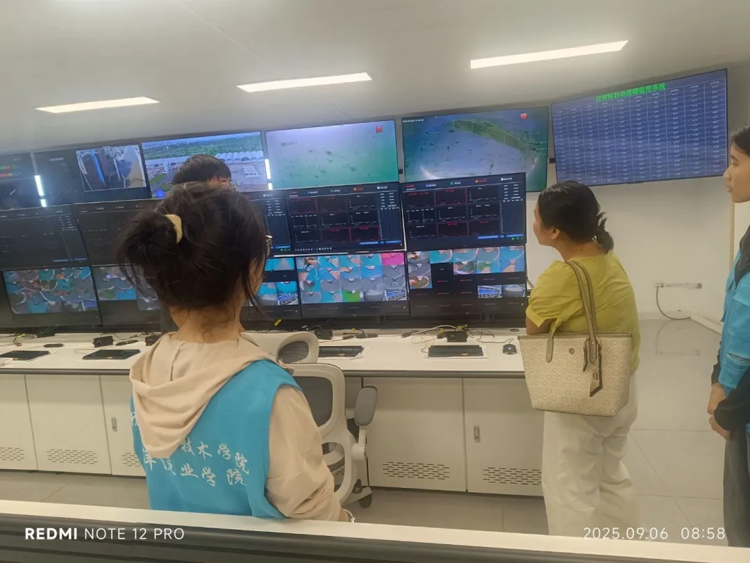 9月初,实践团赴防城港红树林水产虾类养殖基地参观学习。在基地中控室,师生们见到了先进的智能化养殖管理系统:通过布置于水下的高频率摄像头,系统可7×24小时实时捕捉虾群活动、摄食及蜕壳等关键行为影像,并借助AI算法精准分析生长状态与健康指标。一旦识别到异常情况,系统会立即将预警信息及处理建议推送至技术人员的智能平板和手表上,实现毫秒级响应与精准干预。同学们亲眼目睹了智能化如何颠覆传统养殖模式,不仅极大提升了养殖效率和成功率,更展现出数字科技赋能现代渔业的巨大潜力。