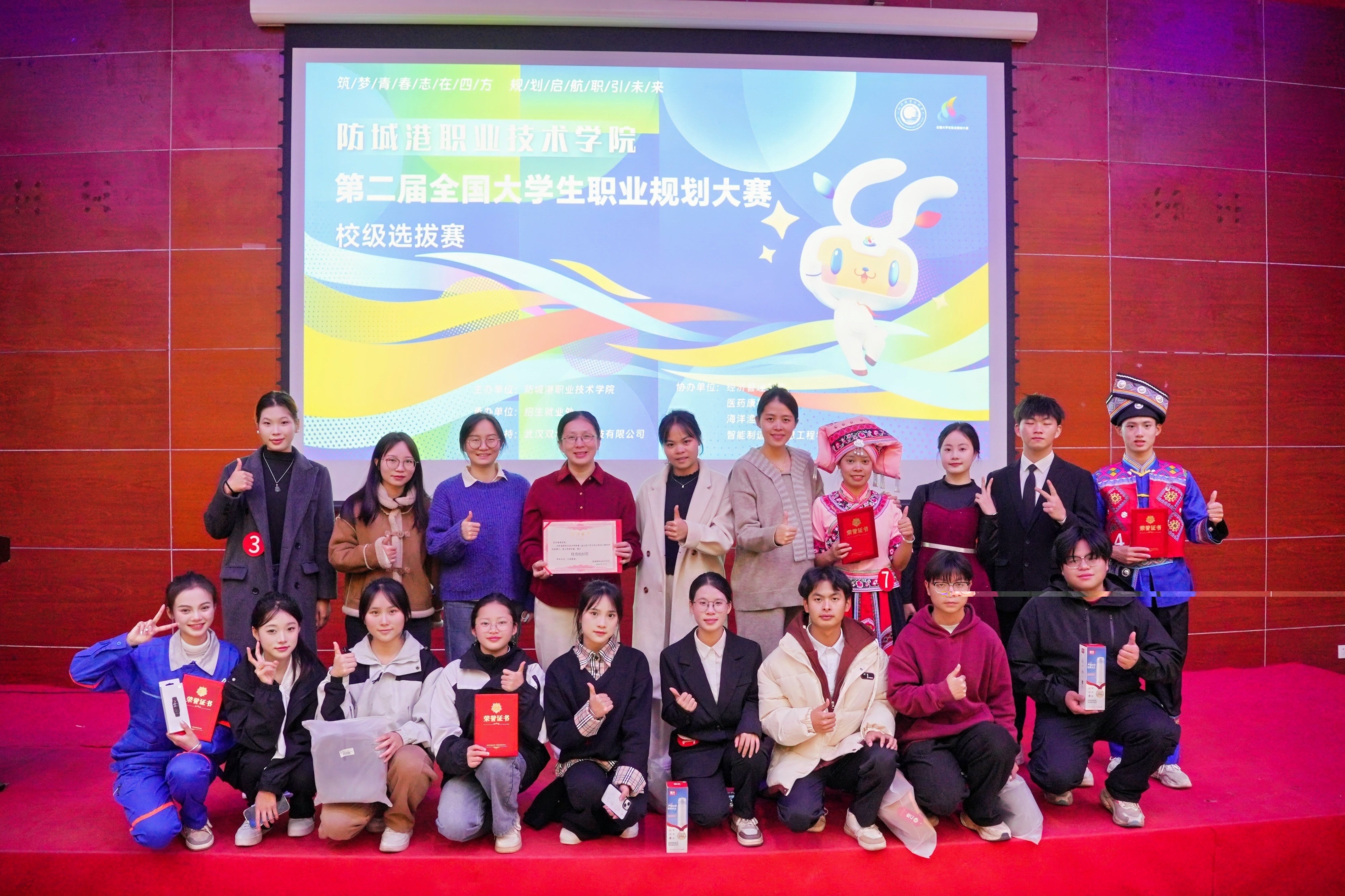 近日,第二届全国大学生职业规划大赛防城港职业技术学院决赛及颁奖典礼在图书馆报告厅成功举行。赛前我院提前谋划,积极动员和组织学生报名参赛,经过初赛遴选推荐了34名同学参加校复赛。经各学院推荐及校复赛激烈角逐,我院9名学生晋级决赛,与全校共15名决赛选手一展风采。