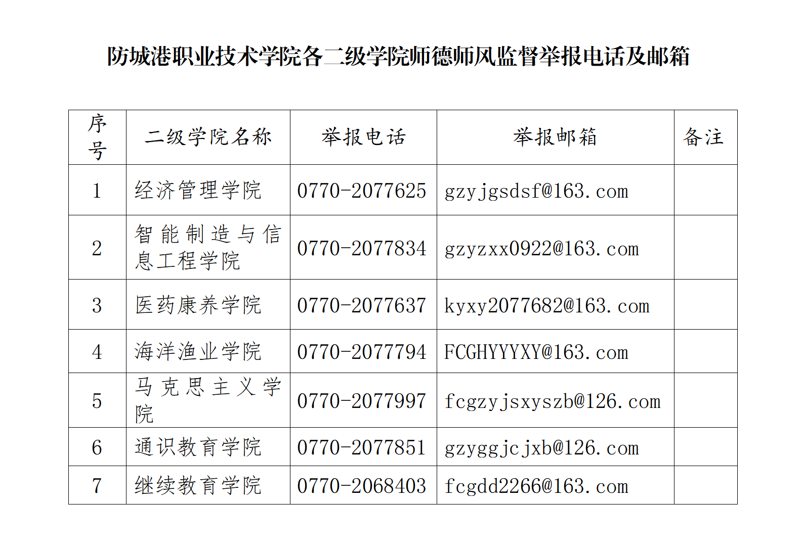 为进一步加强我师德师风建设,构建师德师风建设长效机制,营造风清气正的教书育人环境,现公布我校及各二级学院师德师风监督举报方式,畅通监督投诉渠道,主动接受广大学生、家长和社会的监督,并按程序受理、核查和处理教师违反师德师风行为。