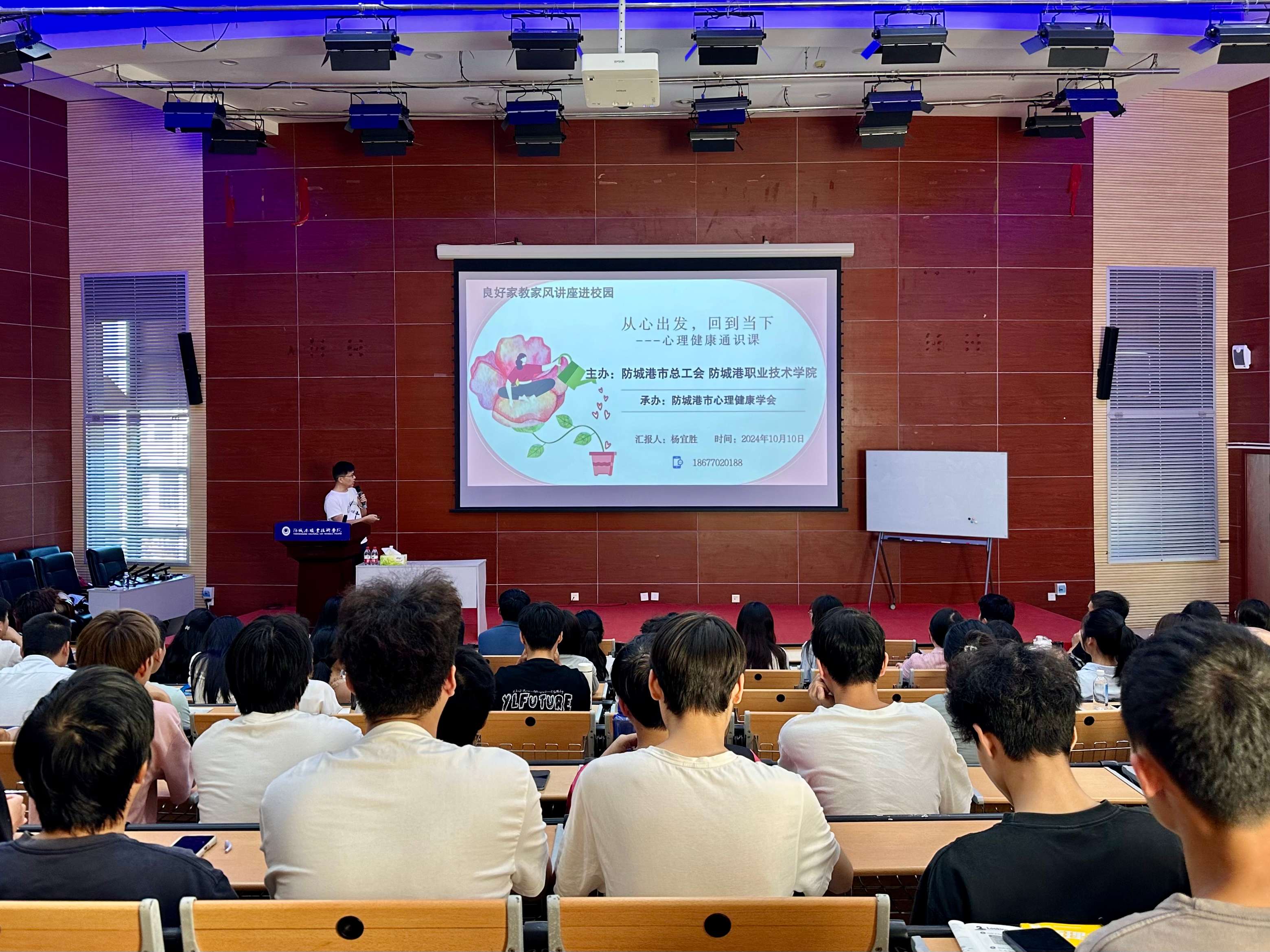 近日,我校联合防城港市总工会,顺利举办了“从心出发 回到当下”为主题的心理健康讲座。讲座邀请了心理专家杨宜胜老师作为主讲,他通过设置实例分析、互动游戏及现场问答等环节,深入讲授了心理健康的重要性、压力与情绪管理技巧等核心内容,进一步增强师生的心理健康意识和提升自我调适能力。未来,我校将继续探索创新心理健康教育模式,推动心理健康教育常态化,为师生提供更加个性化、专业化的心理健康支持。180余名师生代表聆听了讲座。(通讯员:工会 朱艳琳)
