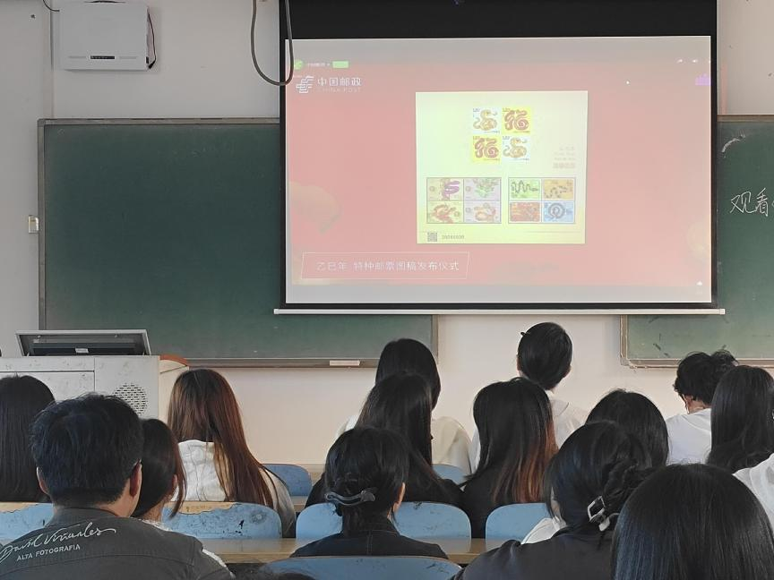 10月30日下午,中国邮政在京隆重举行了《乙巳年》特种邮票图稿发布仪式,正式揭晓了这套寓意蛇年生肖的邮票设计。当日,我校集邮者之家社团积极响应,精心策划了集中观看活动,60余名师生齐聚一堂,共同见证了这一时刻,同时还有1000余名师生集邮爱好者通过线上平台自行观看了仪式。未来,港职院集邮者之家将举办更多类似活动,推动集邮文化在校园内的传承与发展。(通讯员:校团委 陈乃铭)