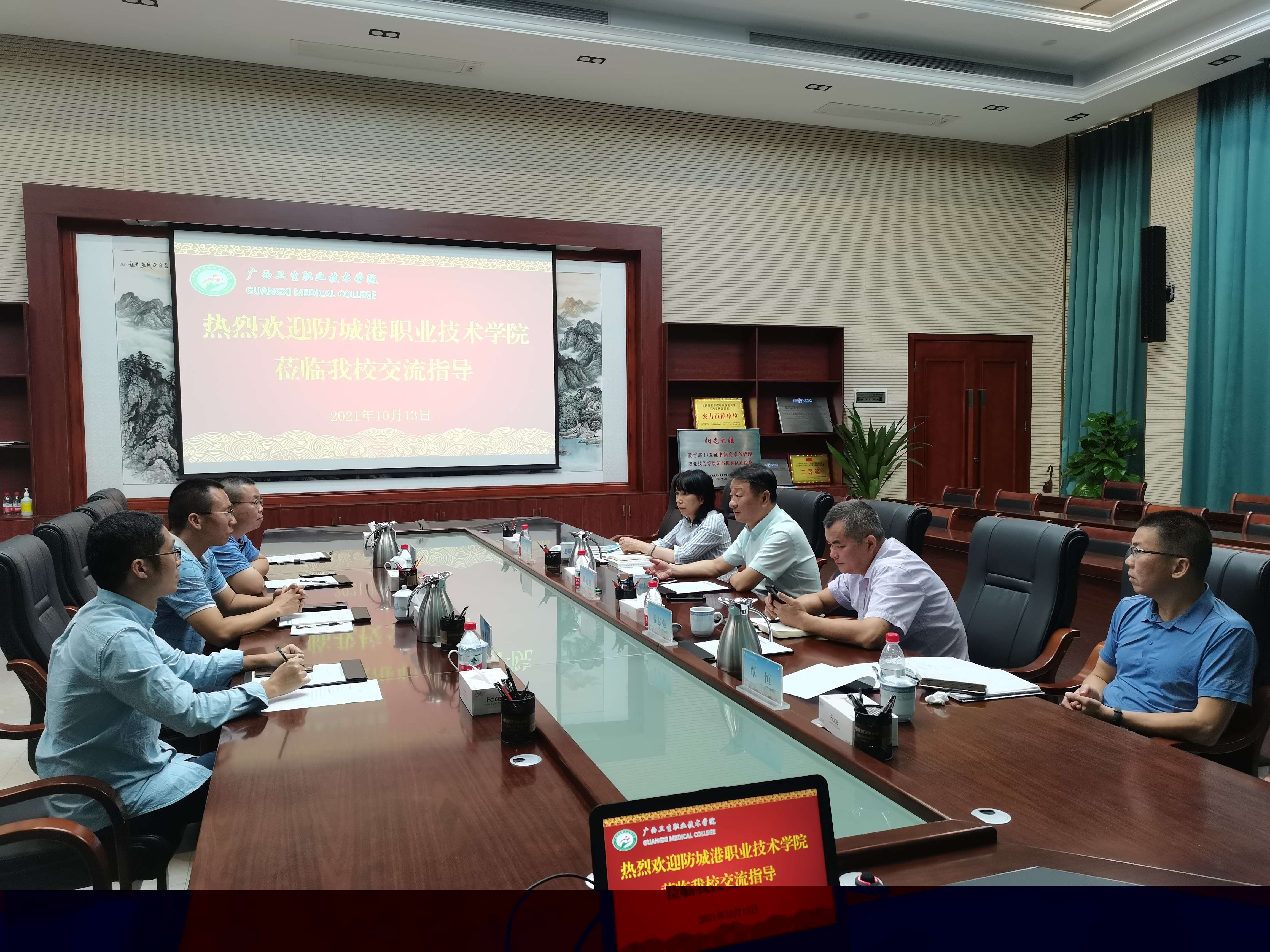 10月13日,我院刘兵权副院长一行前往广西卫生职业技术学院开展学习交流活动,广西卫生职业技术学院周元明院长及相关处室负责人会见我院刘兵权副院长一行。
