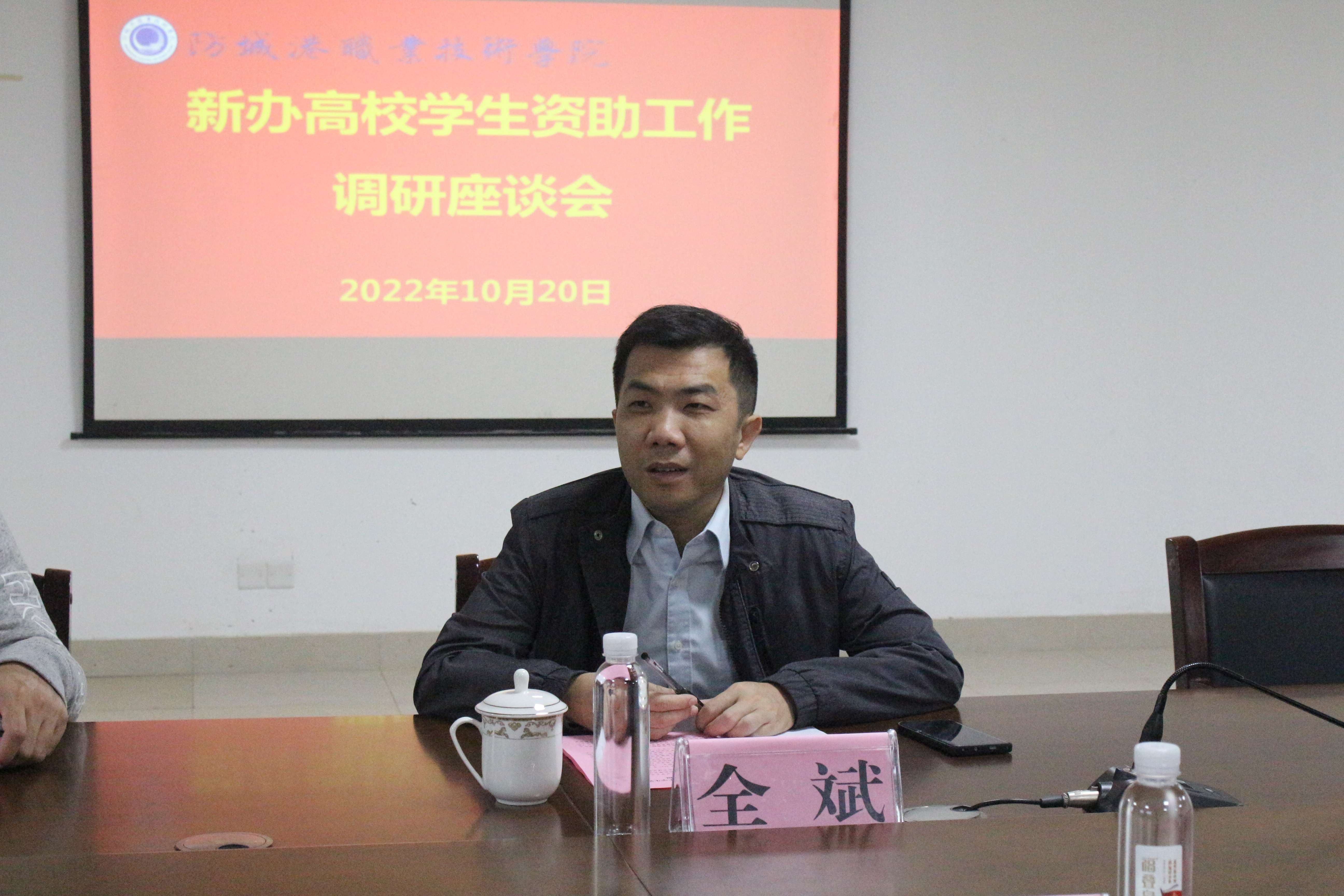 全斌在会上表示,此次调研旨在了解新办高校的资助工作开展情况及具体资助资金缺口情况,并就学校今后如何做好学生资助工作提出了以下要求:一要强化思想引领,提高政治站位,学校要高度重视学生资助工作,强化资助育人工作的使命担当,推动学生资助工作高质量发展;二要强化教育功能,提高育人实效,注重人文育人工作发展,坚持资助与育人相结合;三要强化队伍建设,提高业务水平,加强资助工作人员系统培训,逐步提升业务素质;四要强化规范管理,提高育人水平。强化顶层设计,探索资助育人工作新举措,进一步推动资助育人工作迈向新台阶。