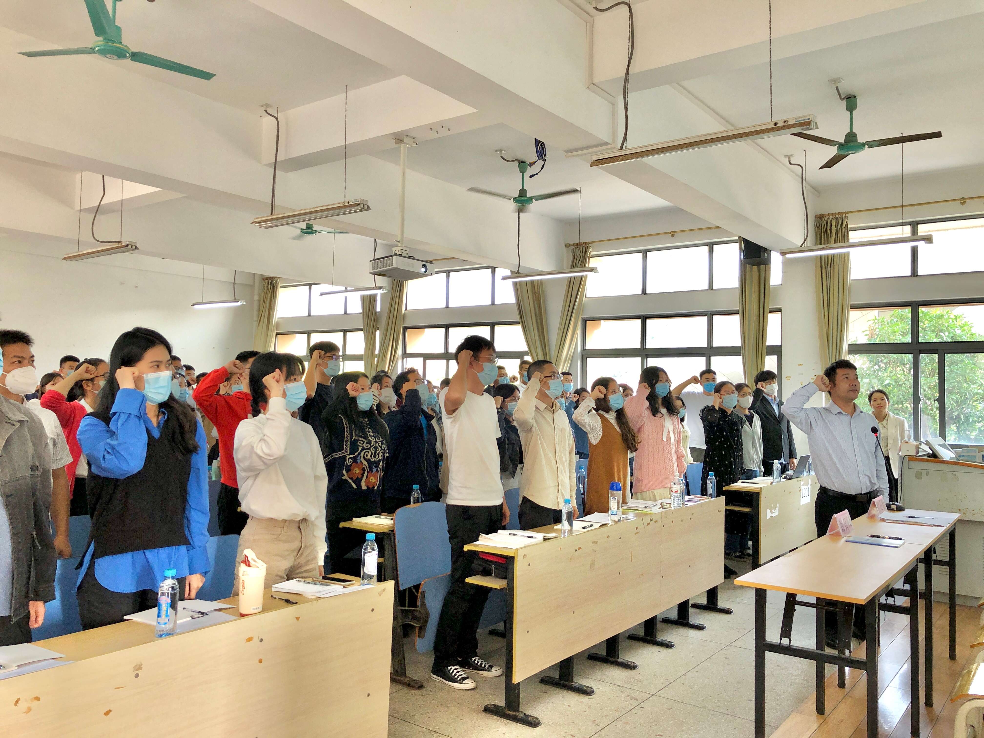 “我宣誓,志愿成为一名教育工作者......”在新进教师代表陈潮宇的带领下,新入职的教职工们进行了庄严的就职宣誓。