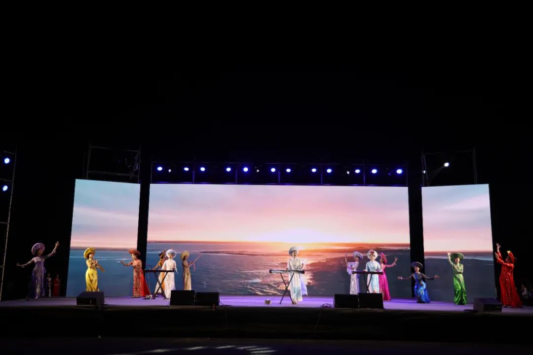 晚会邀请到了防城港市群众艺术馆京乐乐团带着国家级非物质文化遗产项目——京族独弦琴艺术来到现场,“一弦能弹百种音”,一曲《京·海·韵》灵动曼妙地展现了京族文化的魅力。