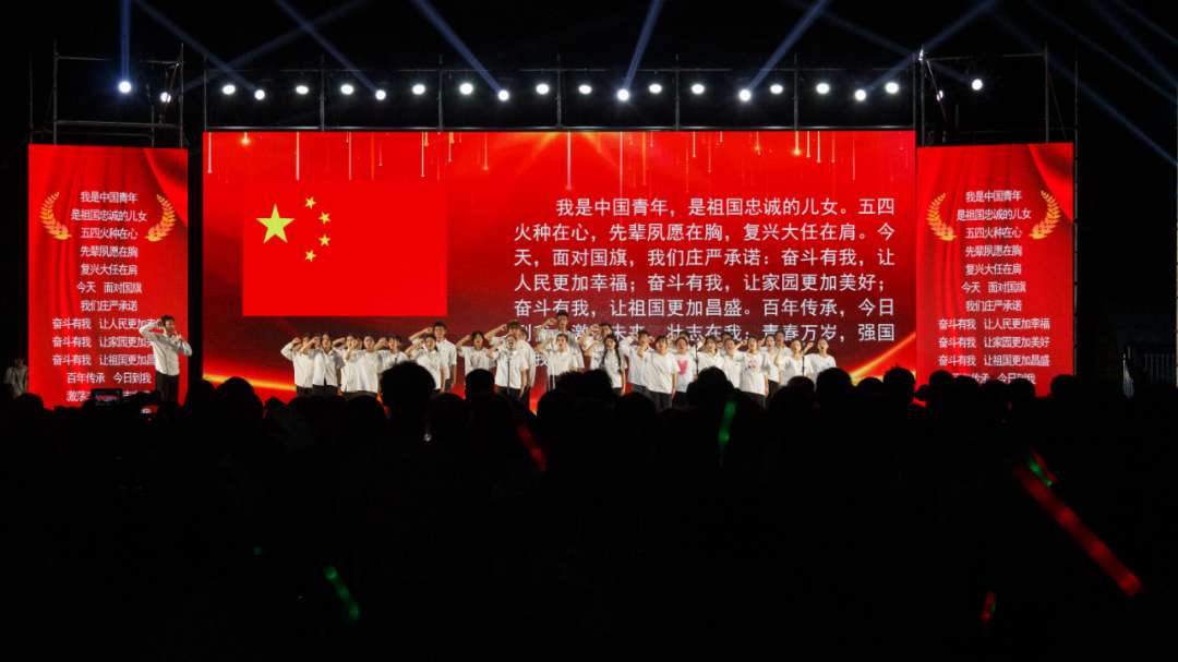 晚会在庄严的中国共产主义青年团团歌中拉开序幕,全体师生整齐肃立、齐唱团歌,以饱满的精神、昂扬的姿态向先辈们致敬,向新时代颂歌。