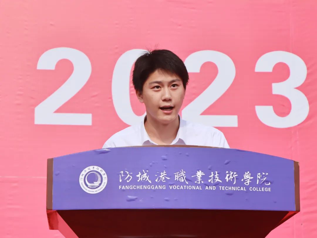 2023级物联网应用技术专业4班陈彪作为新生代表发言,他分享了入学感悟,对老师的悉心教导和同学们的热情帮助表示了感谢,并展望了自己今后的大学生活,期待与同学们一起砥砺奋进,共同进步,励志成为敢担当、能吃苦、肯奋斗的新时代好青年。