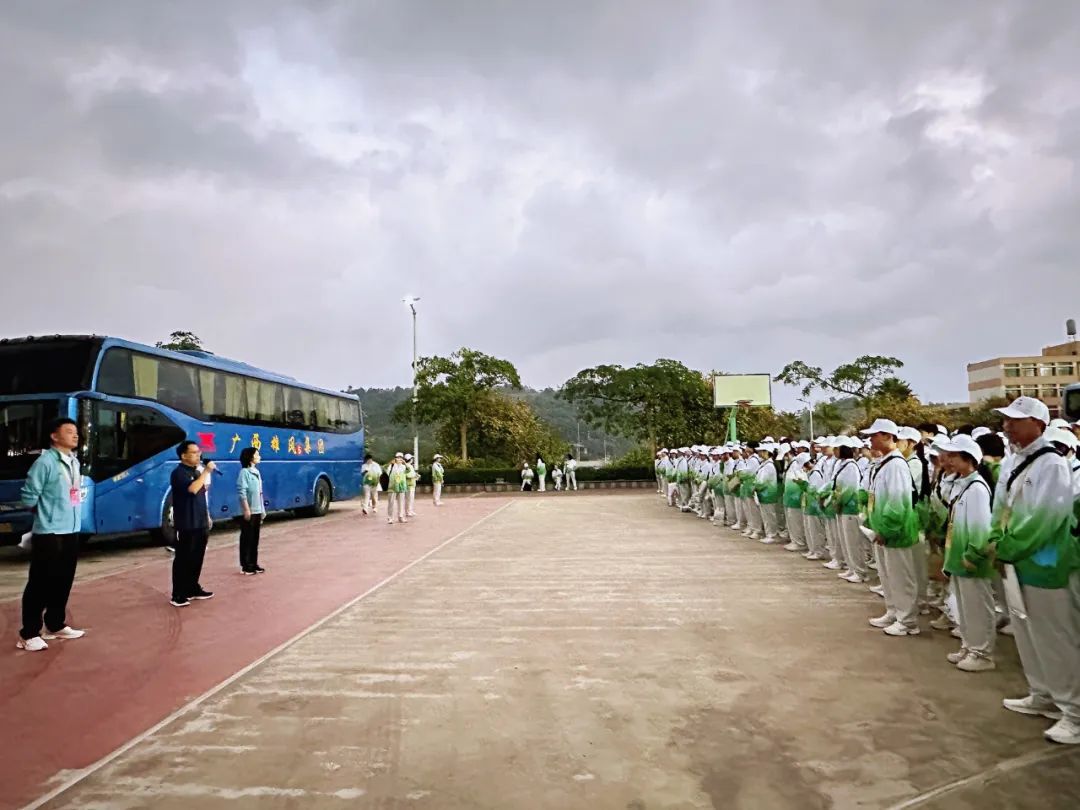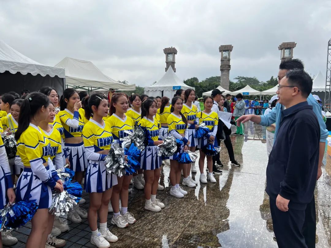 11月3日,首届学青会公路自行车比赛开赛仪式在防城港市顺利举行,防城港职业技术学院910名师生参与志愿服务和文艺演出。早上6点30分,910名师生集中学校篮球场,整装待发,我校校长欧阳群东参加出发仪式,对即将出发的师生作动员讲话。欧阳群东首先对师生们积极参与学青会志愿服务表示感谢,鼓励大家坚守工作岗位,充分发扬志愿服务的精神,圆满完成各项工作任务,充分展示港职院的青年志愿者风采。