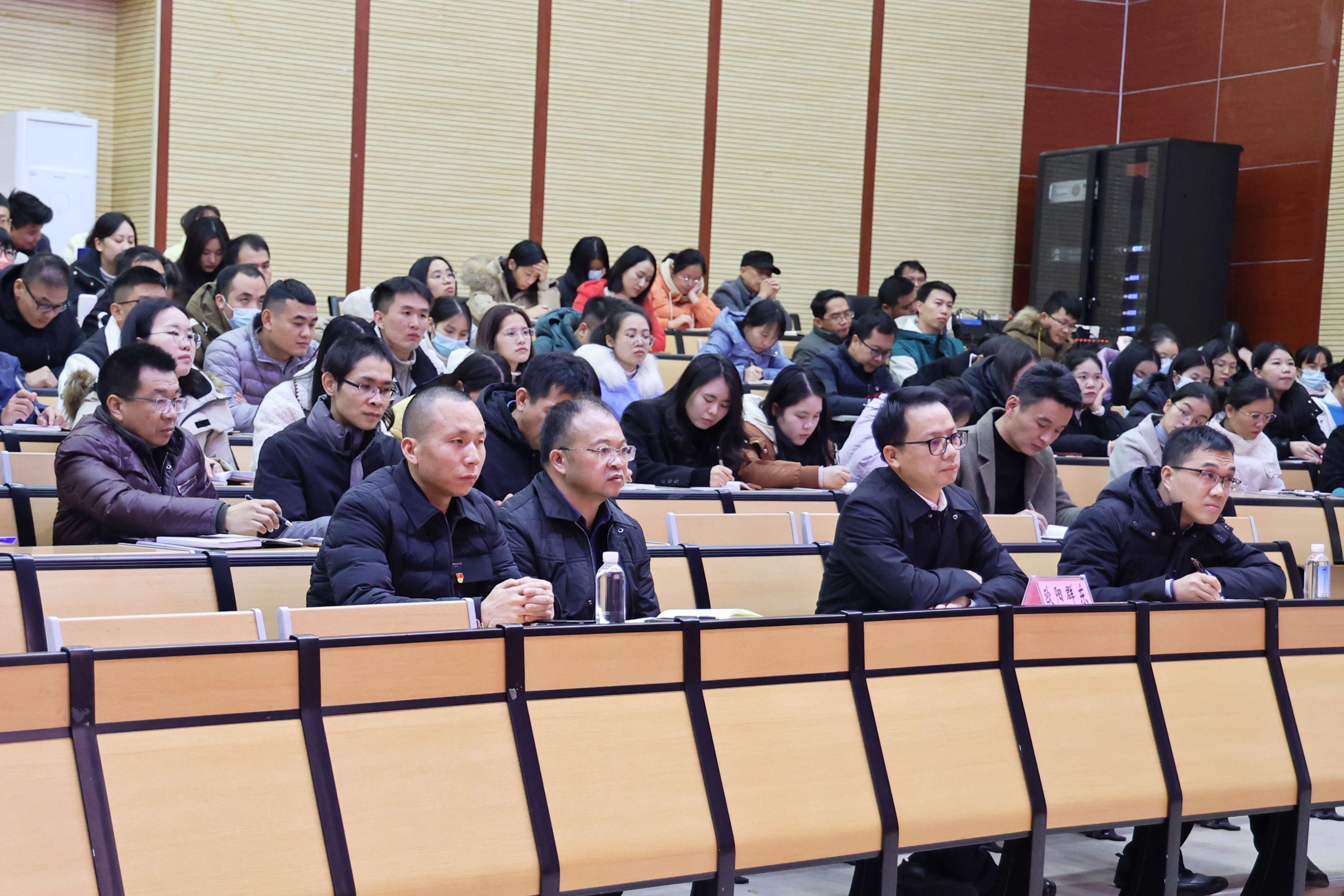 12月18日,我校召开全体教职工会议,深入学习习近平总书记视察广西时的重要讲话精神,对全校学习宣传贯彻落实工作作出部署。市政协副主席、校党委书记陆健文出席会议并讲话,党委副书记、校长欧阳群东主持会议,学校领导班子成员、全体教职工参加会议。