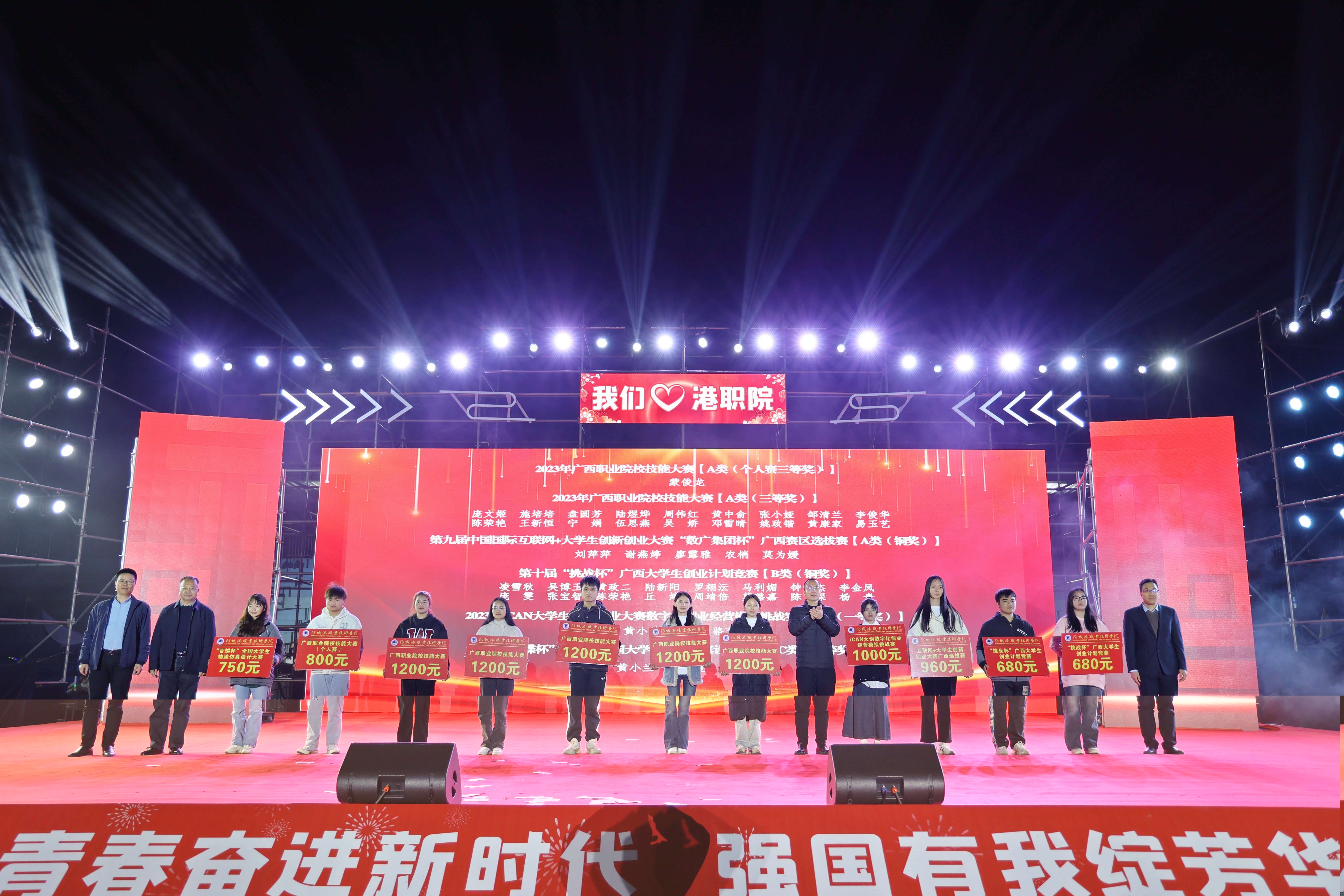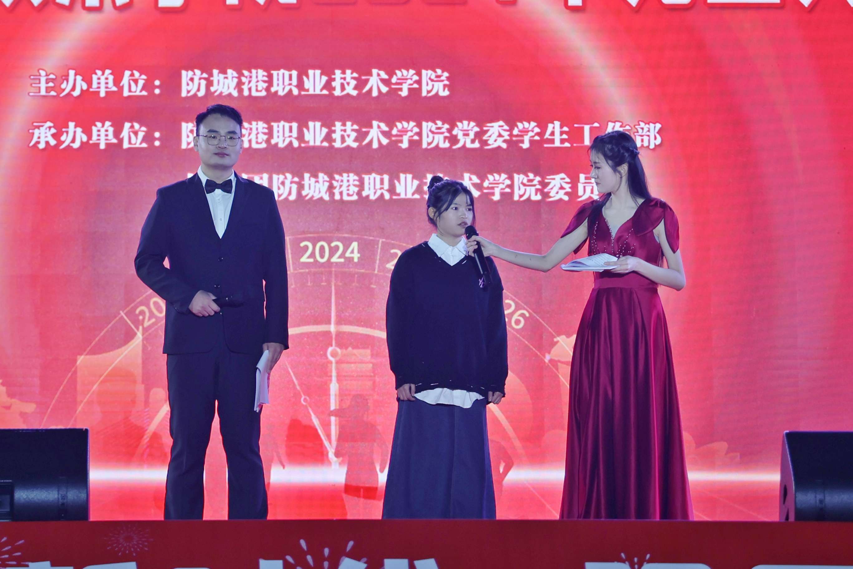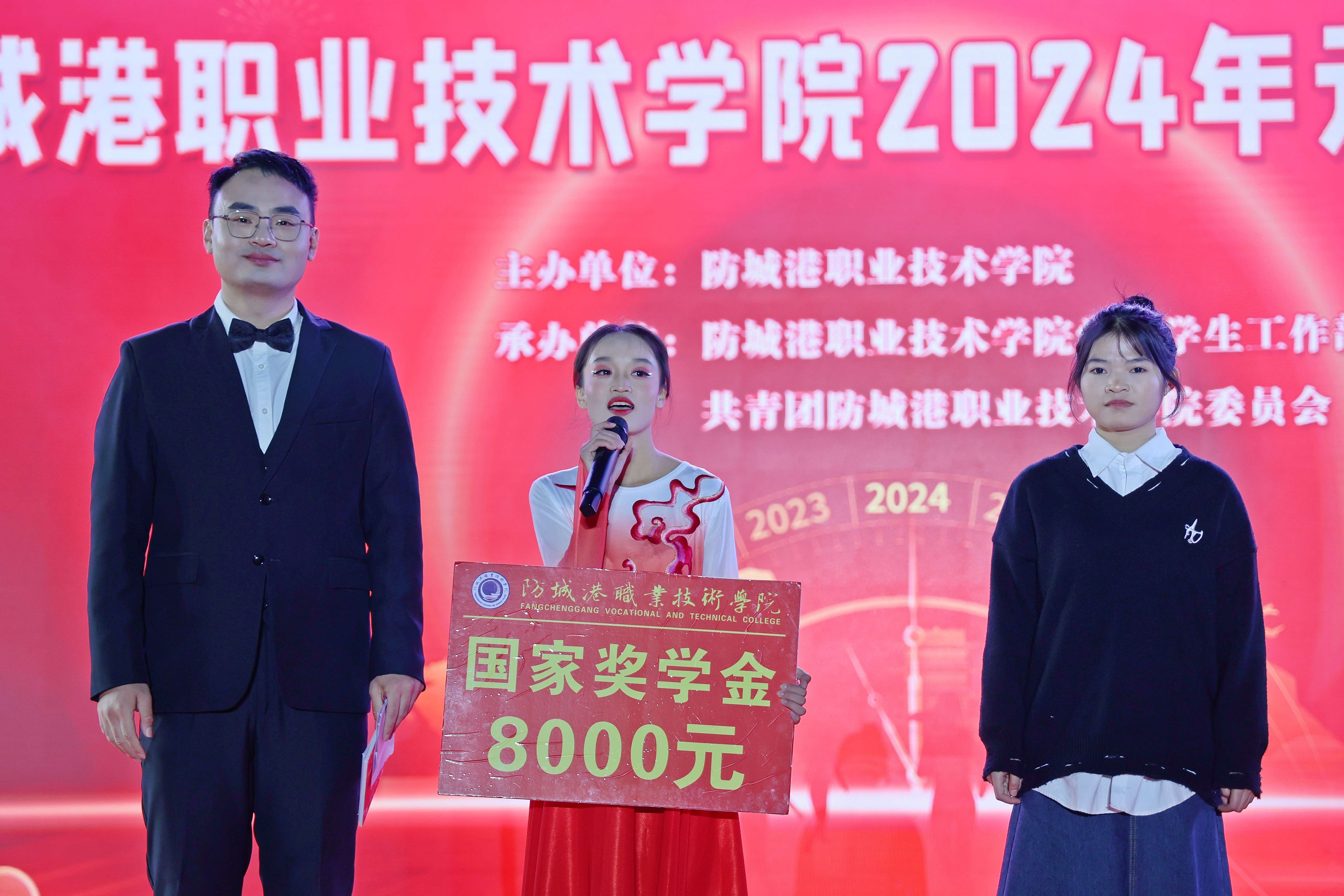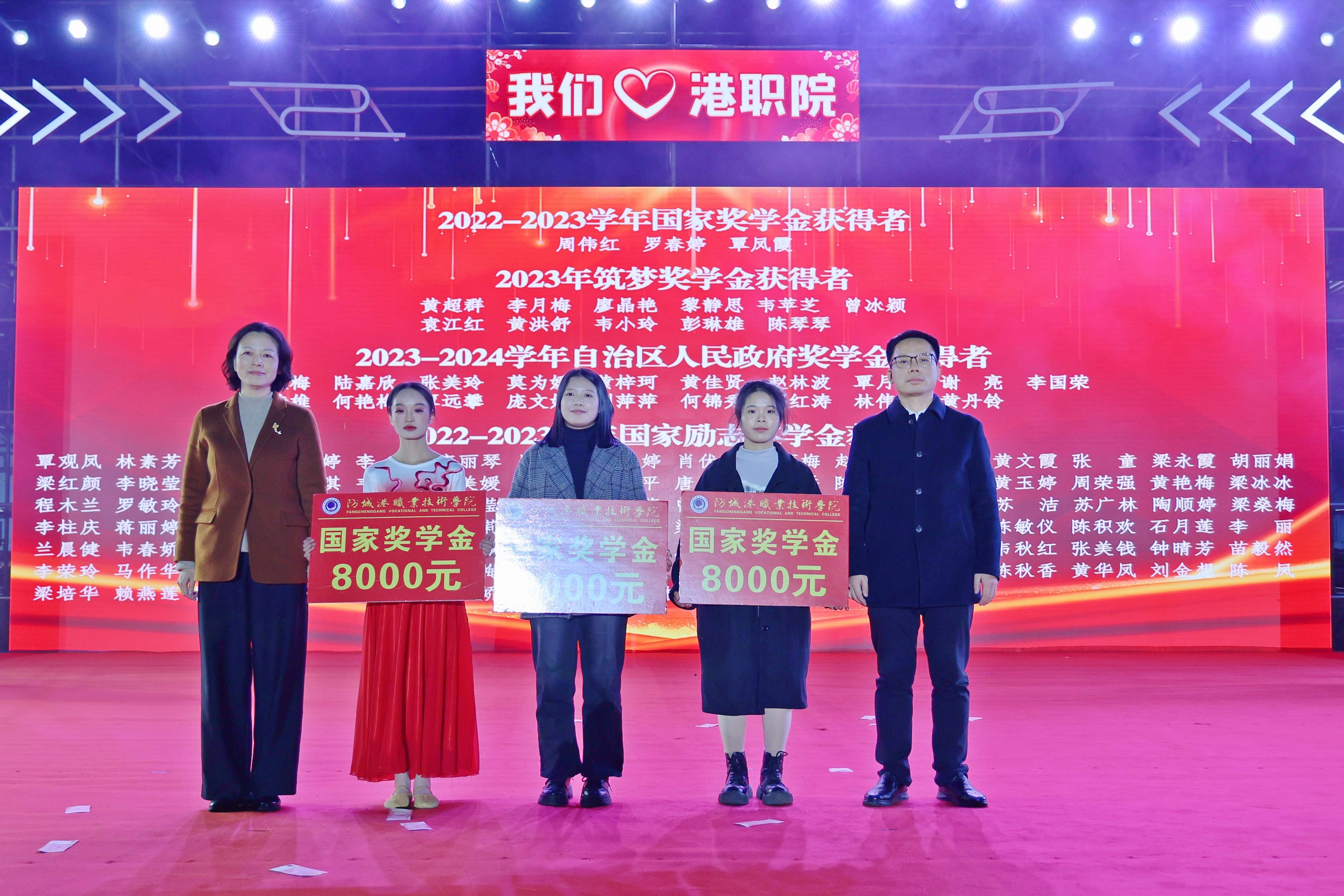 青春奋进新时代,强国有我绽芳华。12月25日-26日,我校第一届校园文化艺术节隆重举办,活动包括2024年元旦文艺晚会和现代民族舞剧《京岛情海》展演。在25日举办的2024年元旦晚会上,学校对品学兼优的学生进行表彰。我校党政领导班子成员分别为国家奖学金、筑梦奖学金、自治区人民政府奖学金、国家励志奖学金、技能竞赛等先进个人代表进行颁奖。全校共有134人获得各类奖学金,获得省部级以上学生技能竞赛奖22项。