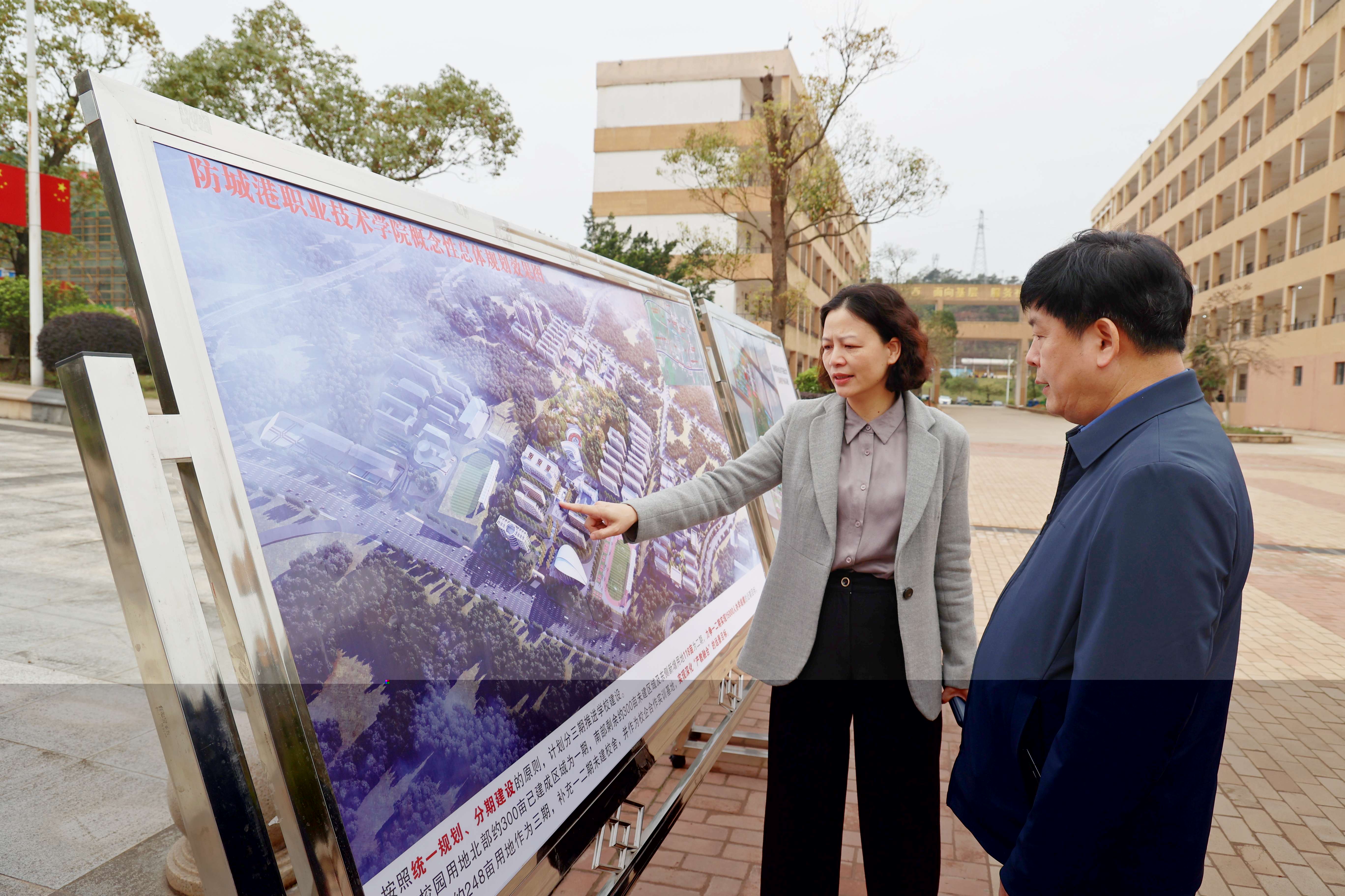 陆健文向韦伟松介绍学校规划建设情况