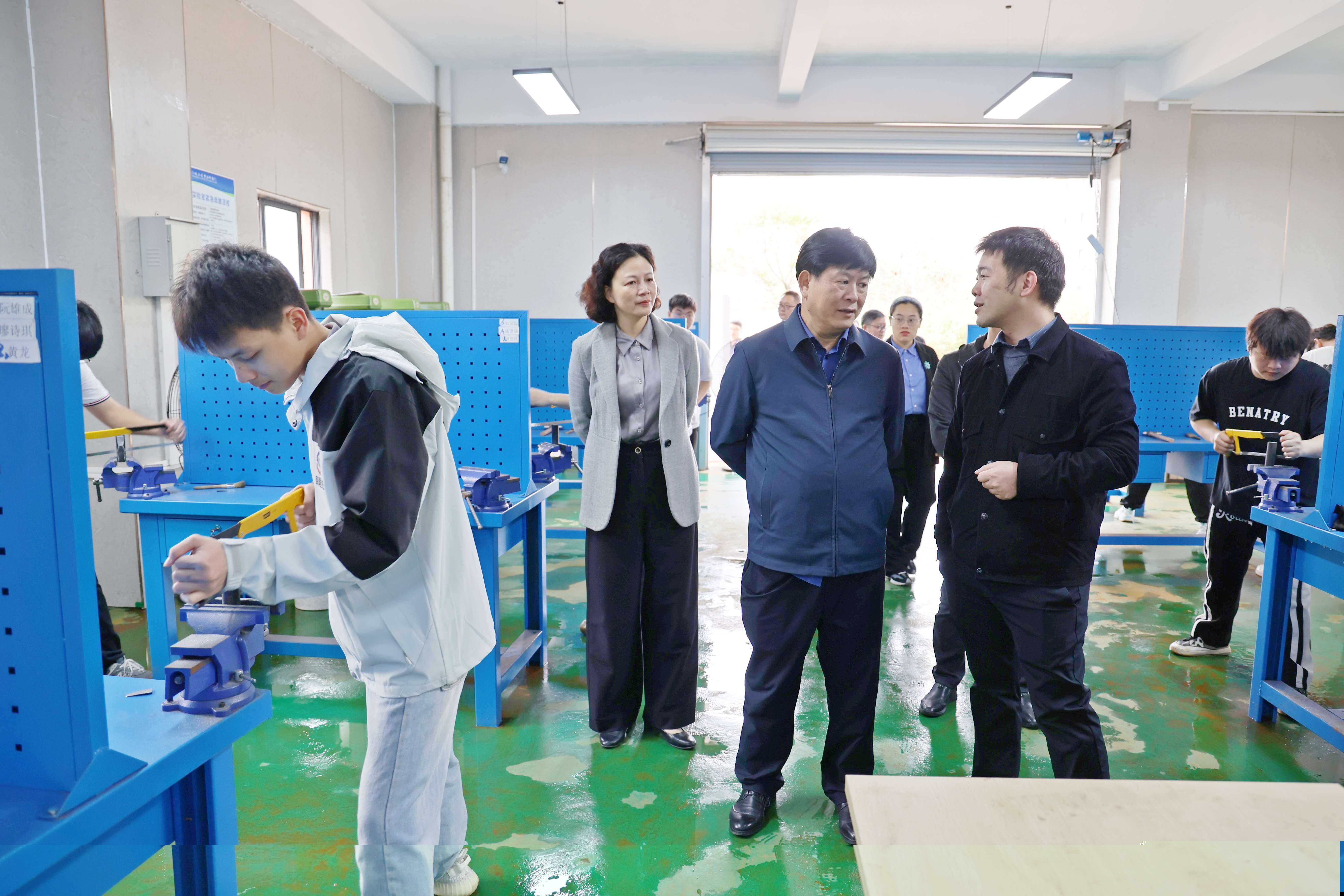 韦伟松参观机电一体化技术专业实训室 韦伟松一行实地参观了校园,了解我校规划建设情况,到机电一体化技术、婴幼儿托育服务与管理专业的实训室,了解我校专业建设、实训室建设及人才培养方面的情况。