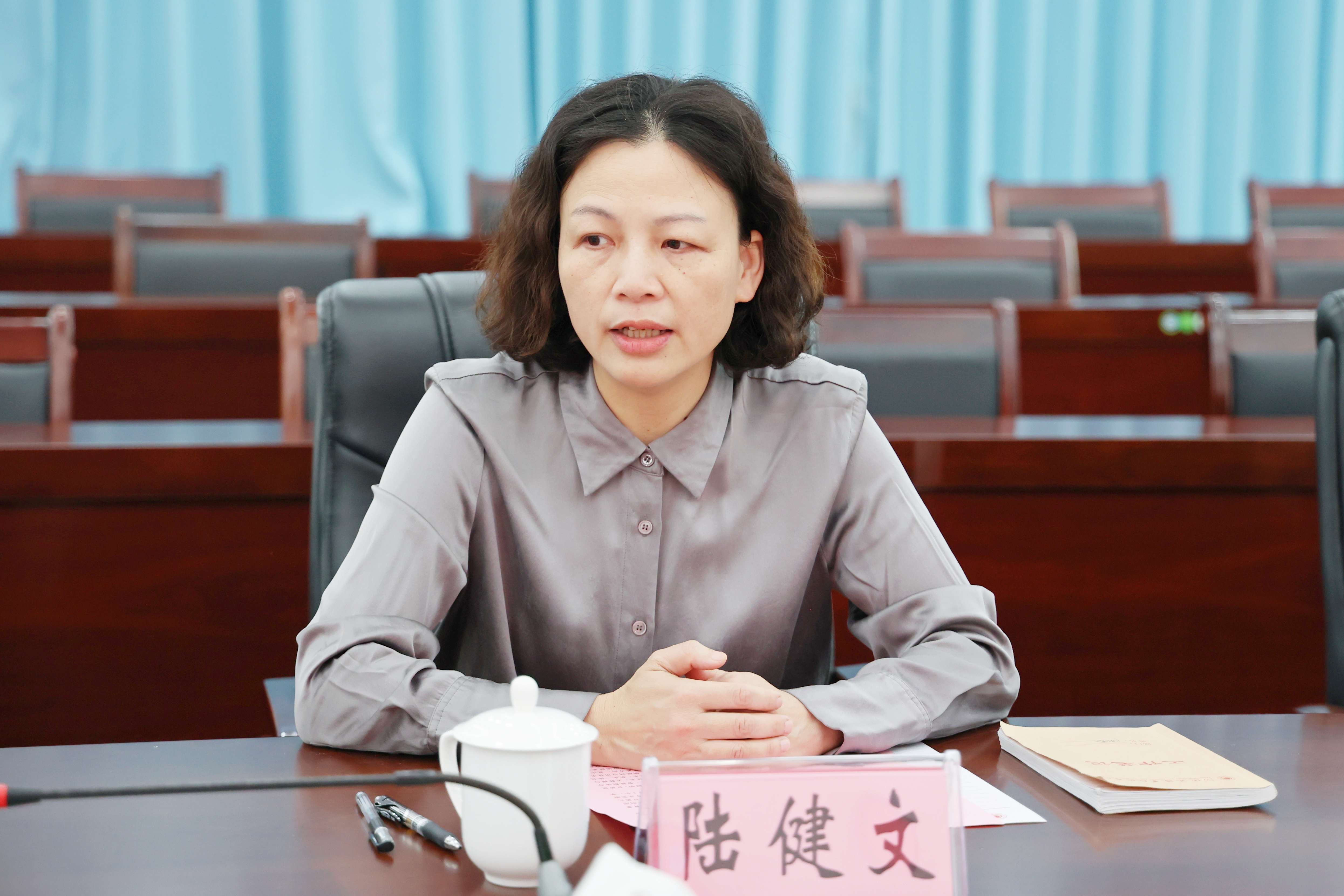 陆健文讲话 双方召开了交流座谈会,会上,陆健文代表学校对韦伟松一行的来访交流表示欢迎,简要介绍了我校的办学历史、办学定位、人才培养、专业建设、发展规划及师资队伍建设等方面的情况,并希望广西现代职业技术学院能给予我校更多的指导和帮助,两校共同强化合作交流,携手共进,共同为经济产业发展培养更多高素质的技术技能人才。