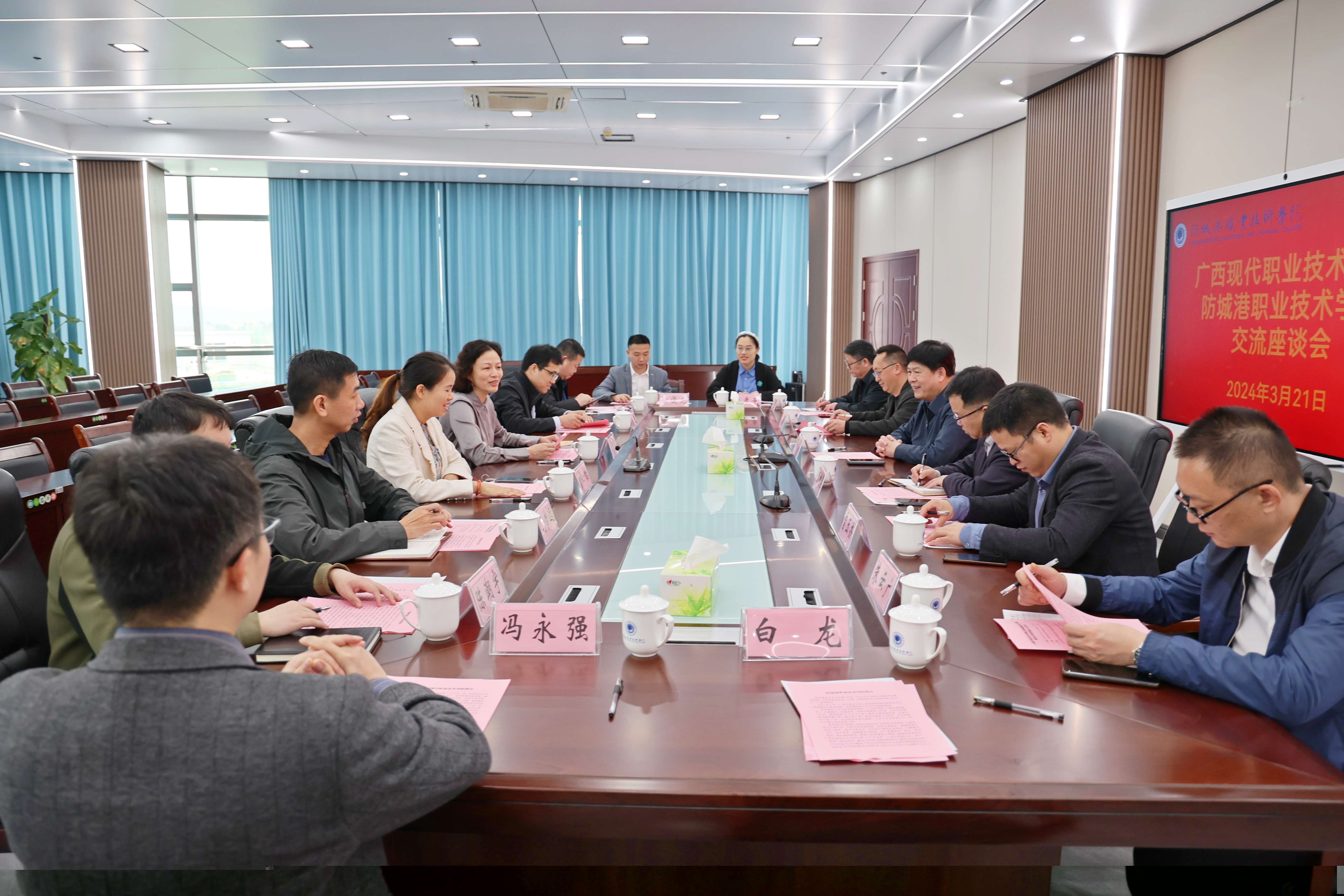 近日,河池市政协副主席、广西现代职业技术学院党委书记韦伟松率队到我校调研交流,防城港市政协副主席、我校党委书记陆健文陪同调研。
