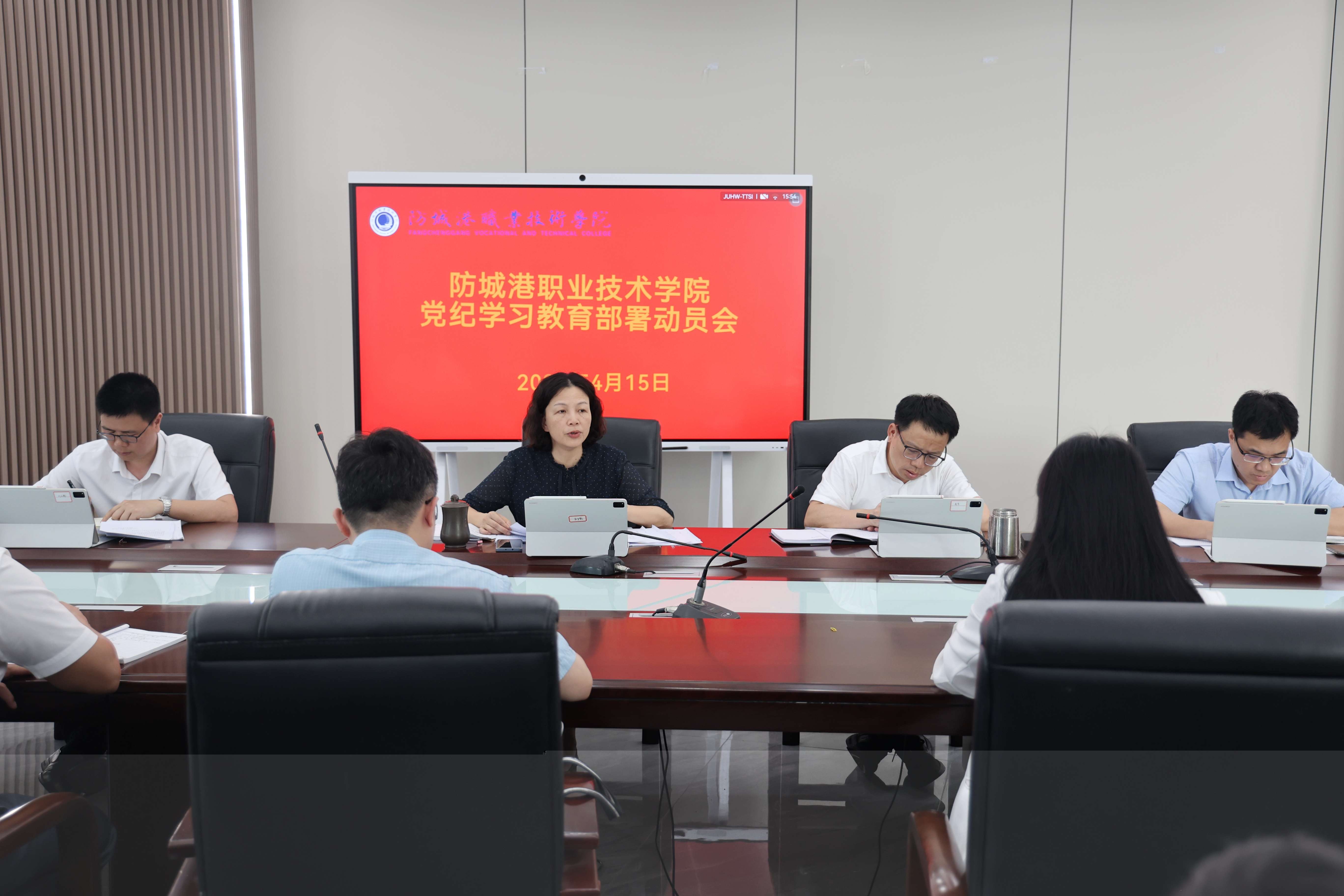 4月15月下午,防城港职业技术学院党纪学习教育动员部署会在图书馆504召开,市政协副主席、校党委书记陆健文主持会议并作动员部署讲话。