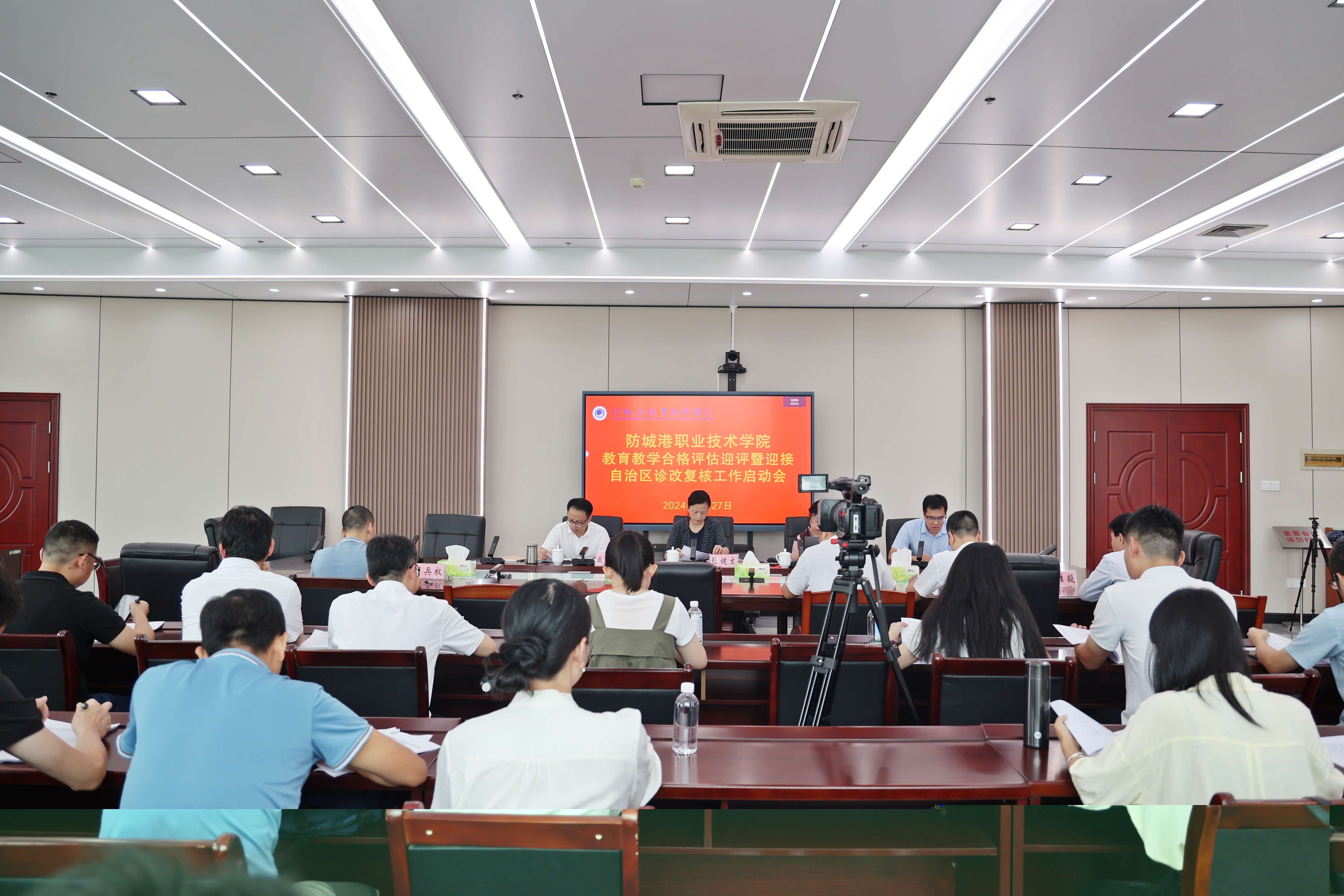 会上,市政协副主席、校党委书记陆健文针对合格评估及诊改复核工作提出了具体要求;校党委副书记、校长欧阳群东在会上作了全面工作部署;副校长易艺主持会议并详细解读了《防城港职业技术学院教育教学工作合格评估迎评工作方案》。