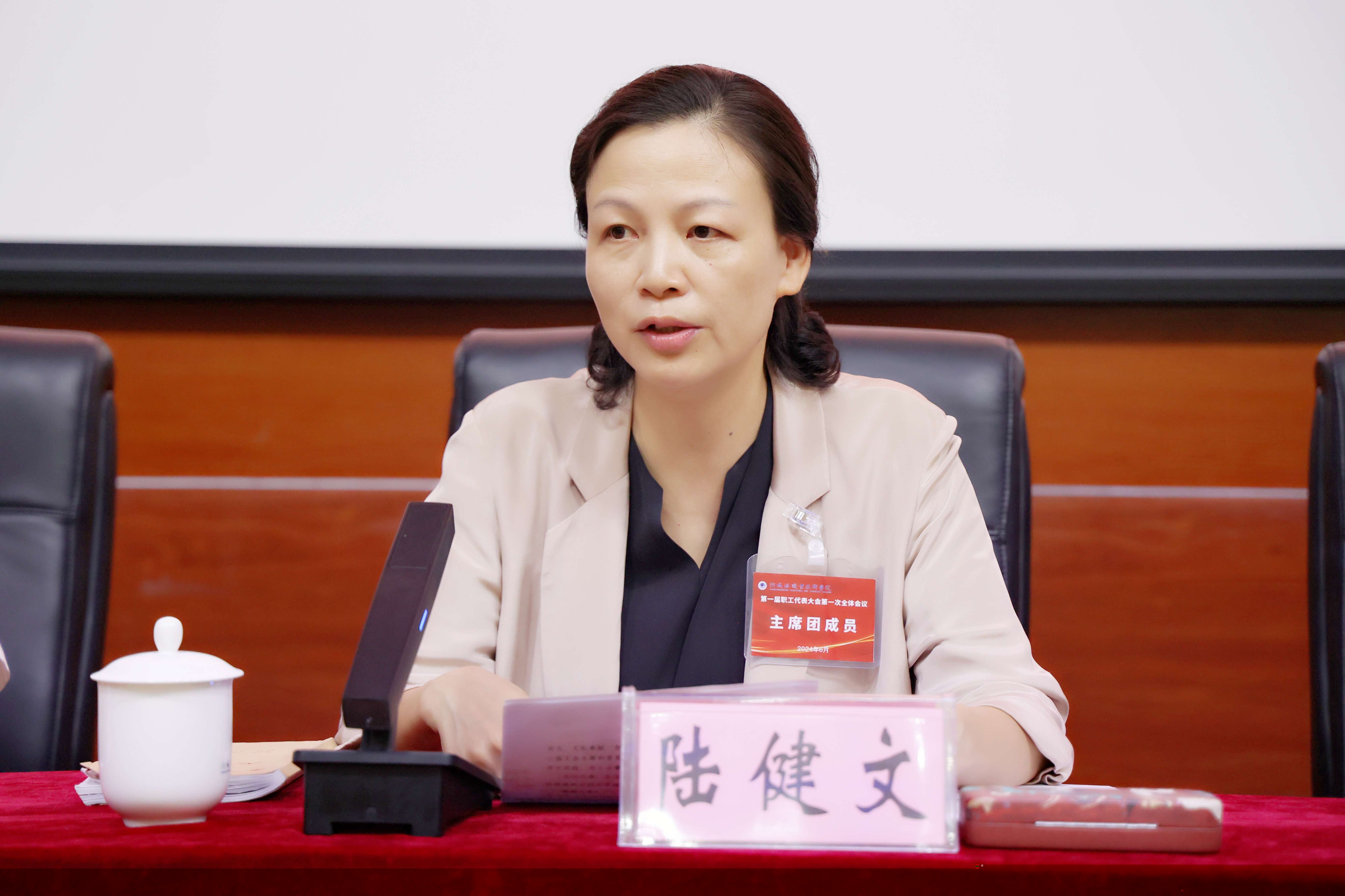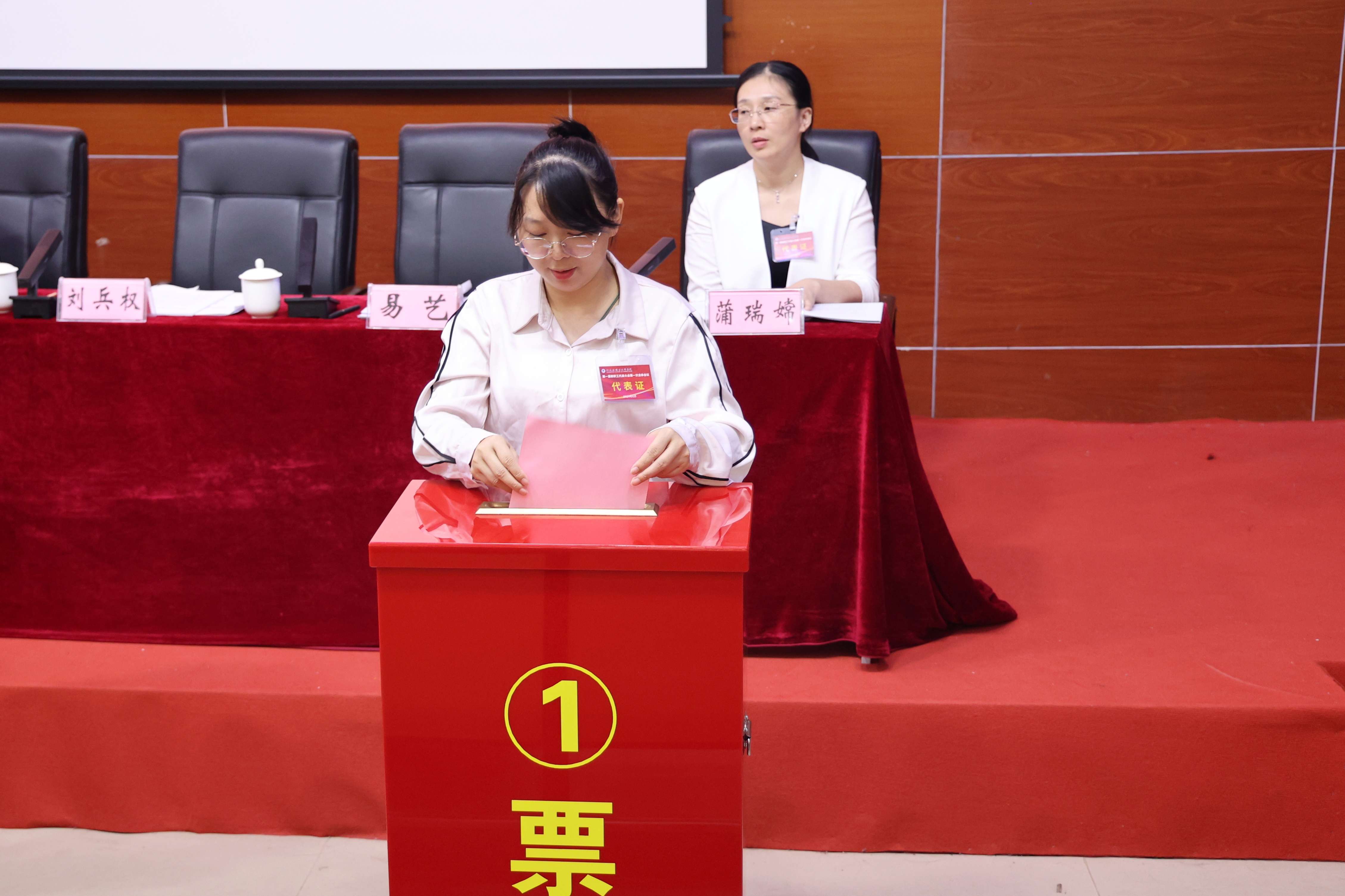 第三届工会副主席蒲瑞嫦主持工会会员代表大会