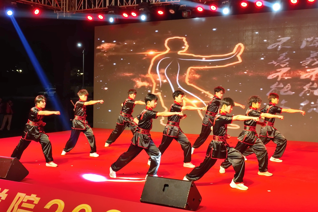 武术表演上,身着传统武术服的师生精神抖擞,气势如虹,动作行云流水,在舞台上穿梭交织,勾勒了一幅幅动人的武术画卷。