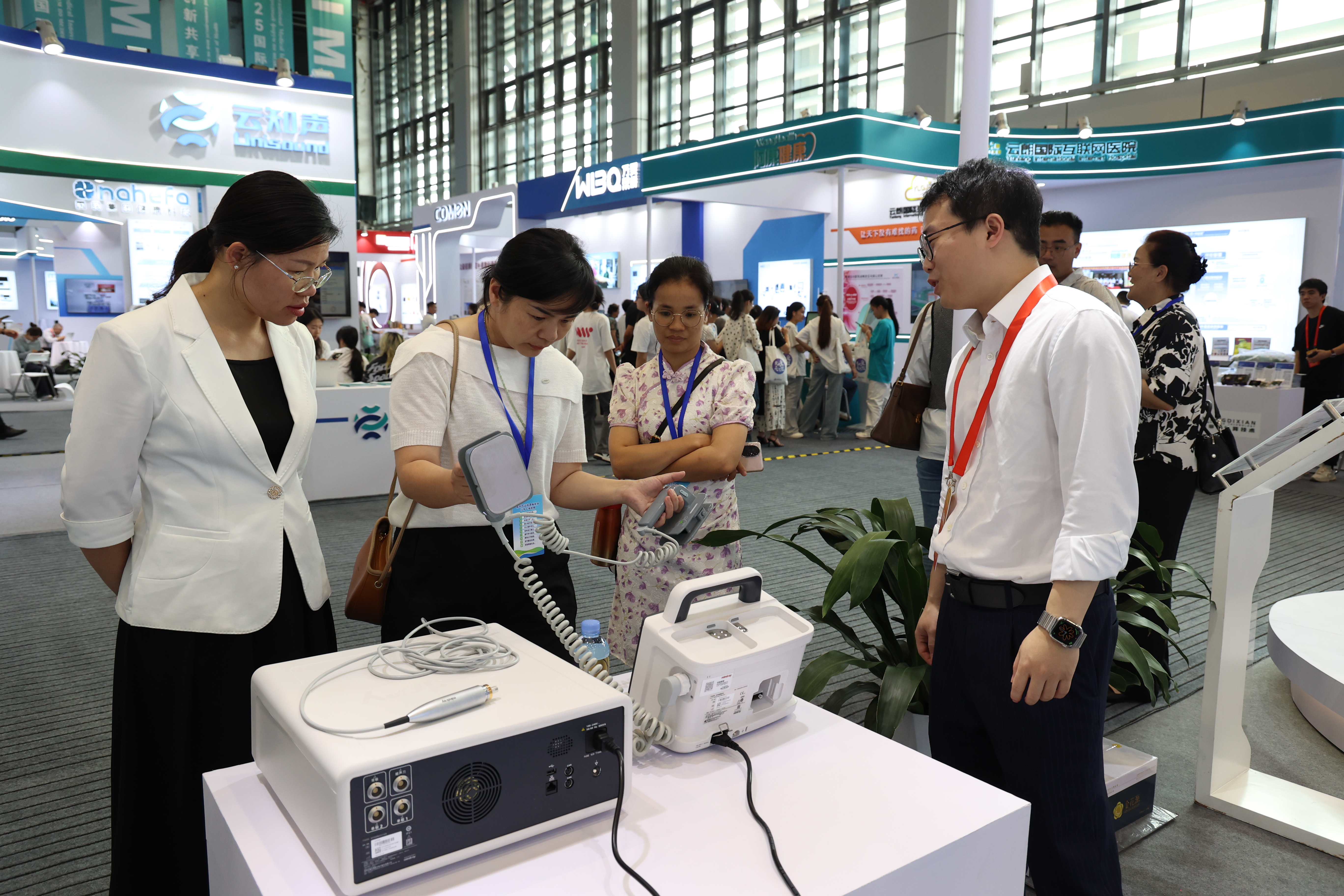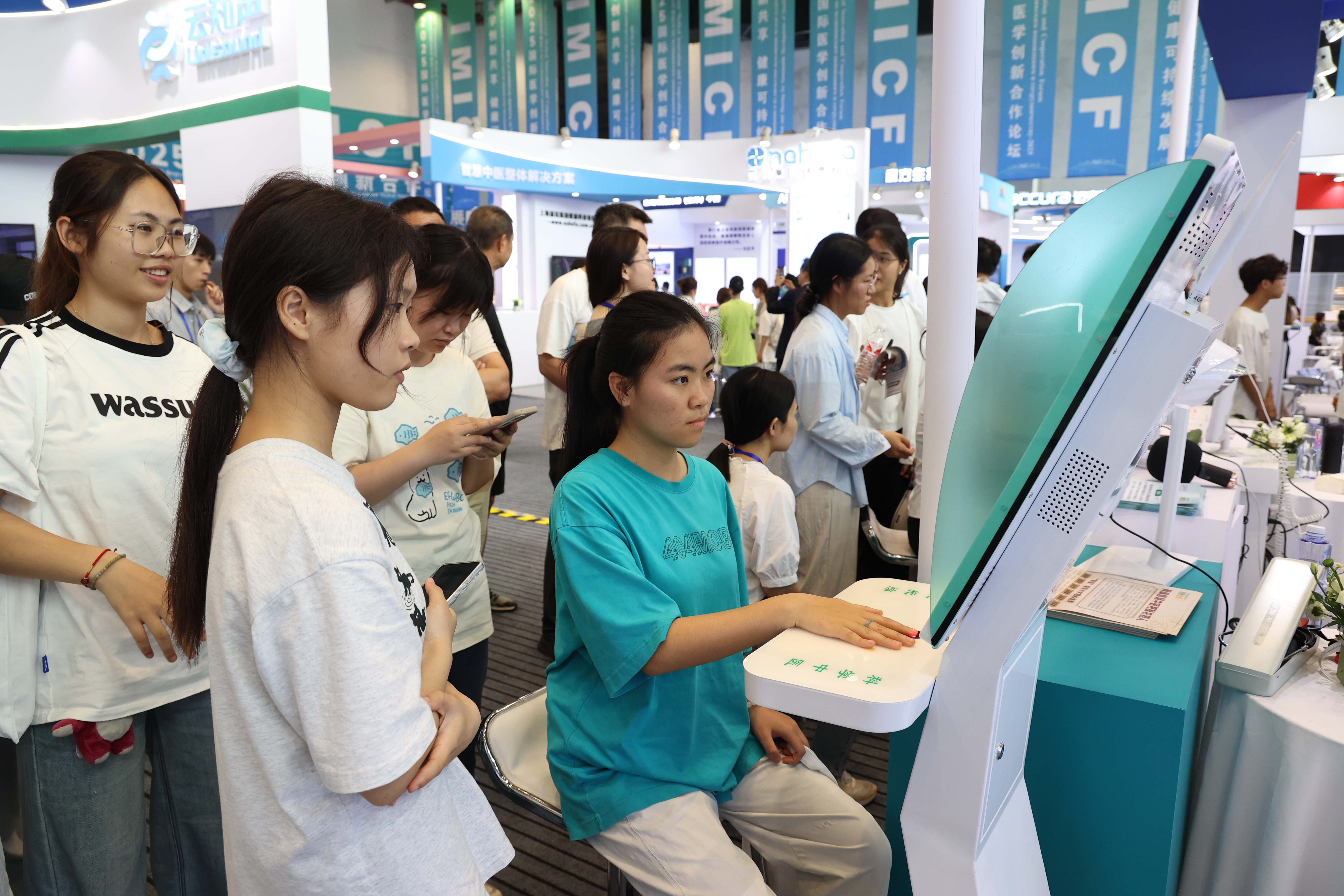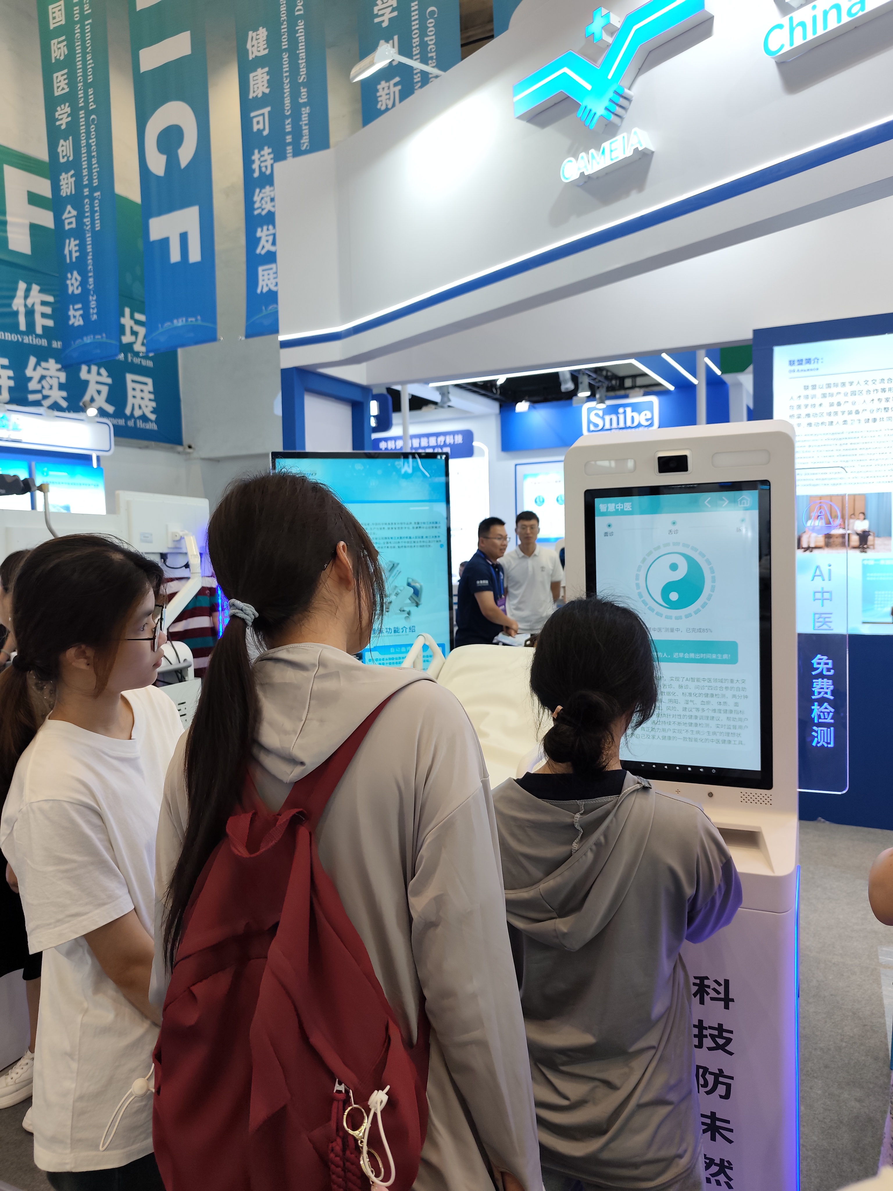 研学实践环节,师生们参观了中国与上合组织国家医学交流与合作成果展厅和“人工智能+医药”展厅,深入了解微创手术机器人、全景动态 PET/CT、伽玛刀精准灭瘤技术、医疗 AI 平台等前沿医疗技术,仔细聆听工作人员的讲解,并切身体验先进智能医疗器械等。师生们在惊叹先进设备的精密与高效的同时,对医学影像等技术的未来发展有了更直观的感受,切实感受到了人工智能在医疗领域的巨大潜力,深刻认识到 “AI + 医疗” 为行业带来的创新变革。