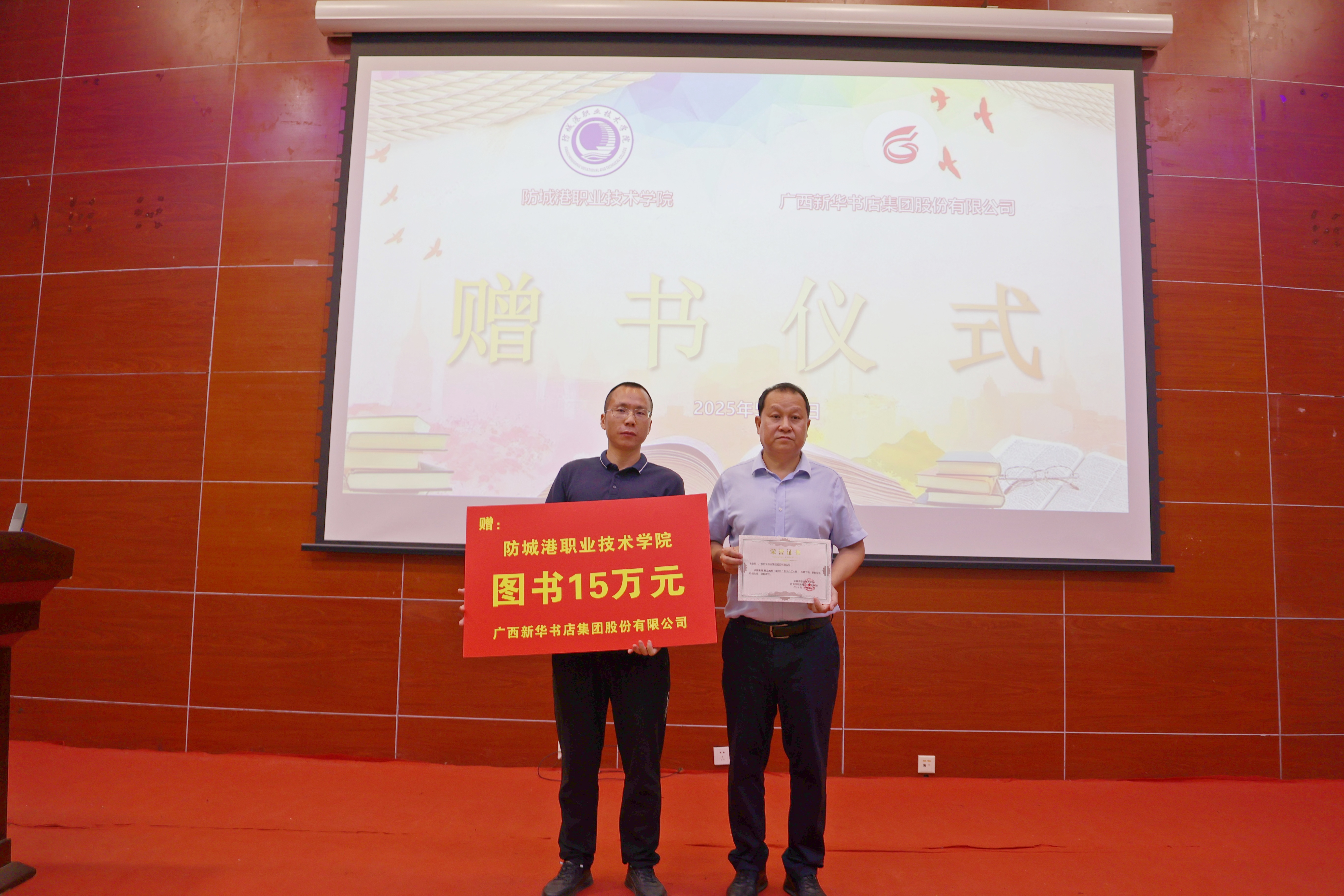 上午10时,图书捐赠仪式在图书馆二楼报告厅举行。广西新华书店集团向我校捐赠价值15万元精品图书,涵盖智能制造、经济管理、医药康养、海洋渔业等领域。副校长刘兵权发表了热情洋溢的致辞,对广西新华书店集团关心、支持我校的建设发展表示衷心感谢。他表示学校将充分利用好这批图书资源,打造书香校园。广西新华书店集团副总经理何庆军表示,新华集团将持续赋能学校职业教育事业高质量发展。