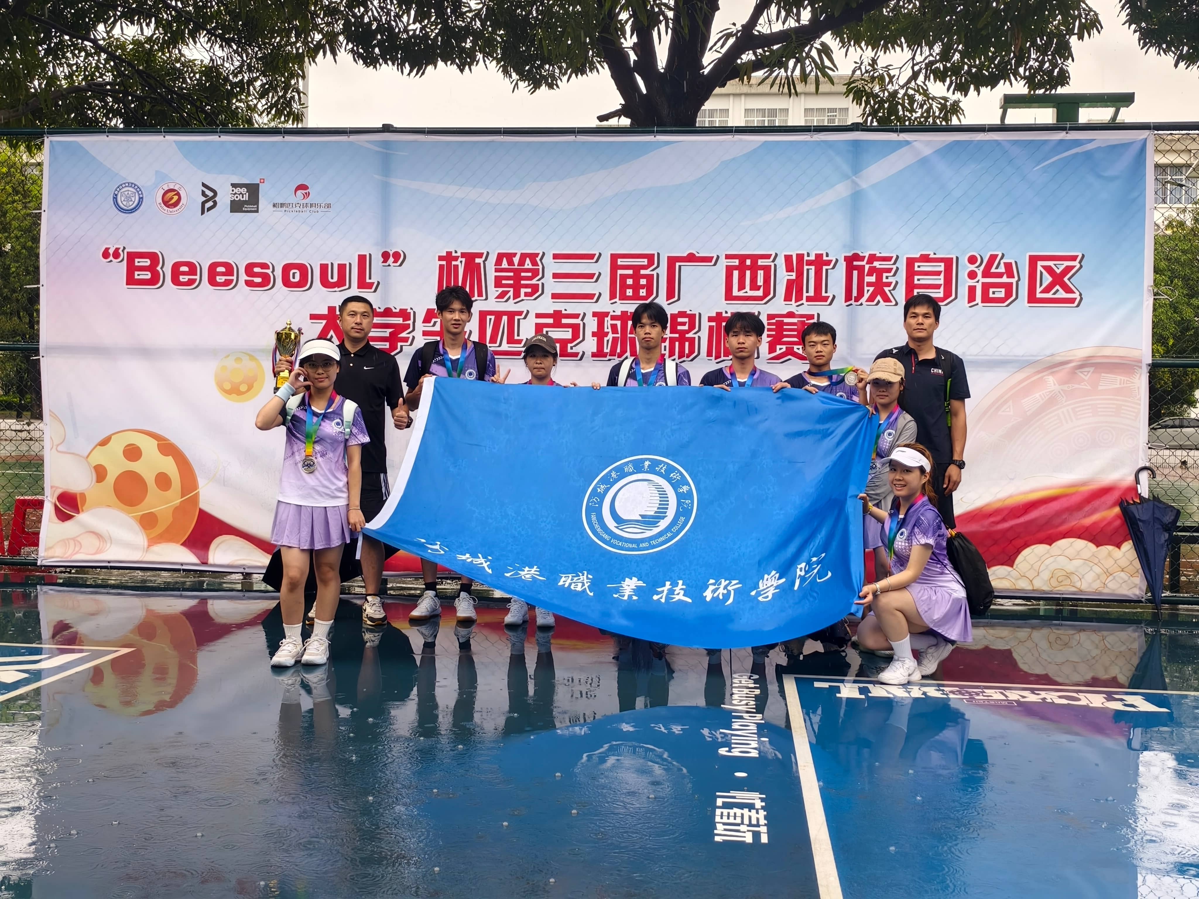 6月7日至8日,由广西学校体育卫生艺术学会主办的“Beesoul”杯第三届广西壮族自治区大学生匹克球锦标赛在百色学院东合校区举行,我校通识教育学院教师黄俊淇、易秀彪带领校匹克球社团队员参赛。赛程中,全体队员顽强拼搏,奋勇争先,荣获高职高专组团体赛第二名!