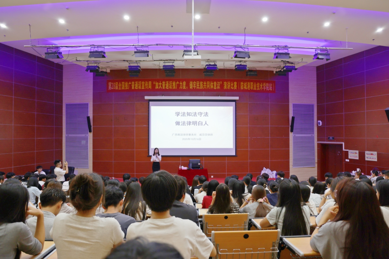 为更好地落实法治宣传教育周活动要求,营造尊法学法守法用法的良好氛围,使法治精神深入人心,近日,我校联合防城港市司法局、防城港市法学会共同举办法治宣传教育系列专题讲座。活动特邀防城港市人民检察院检察委员会委员、第五检察部主任张恺,以及广西维冠律师事务所滕映龙、戚莎莎律师担任主讲。讲座聚焦宪法与民法的核心内容,紧扣师生工作、学习与生活中的常见法律问题,通过重点解析和典型案例分析,生动阐释法律知识,助力师生将法治理念内化于心、外化于行。