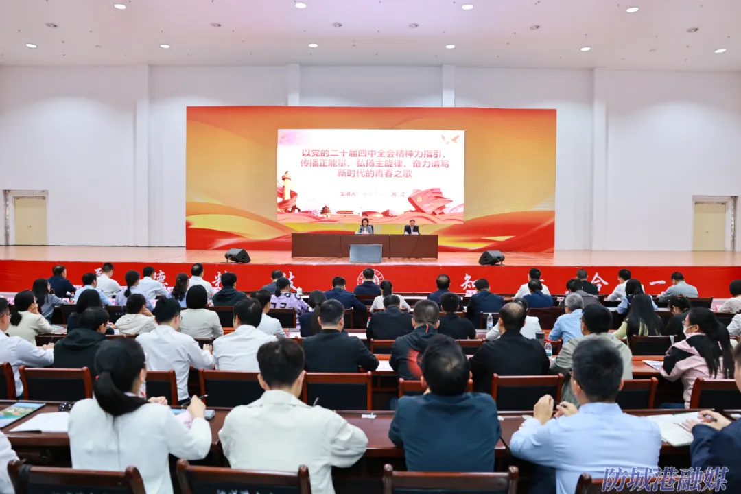 11月14日,市委书记黄江来到防城港职业技术学院宣讲党的二十届四中全会精神,并以《以党的二十届四中全会精神为指引,传播正能量、弘扬主旋律,奋力谱写新时代的青春之歌》为题,为广大师生作专题讲座。