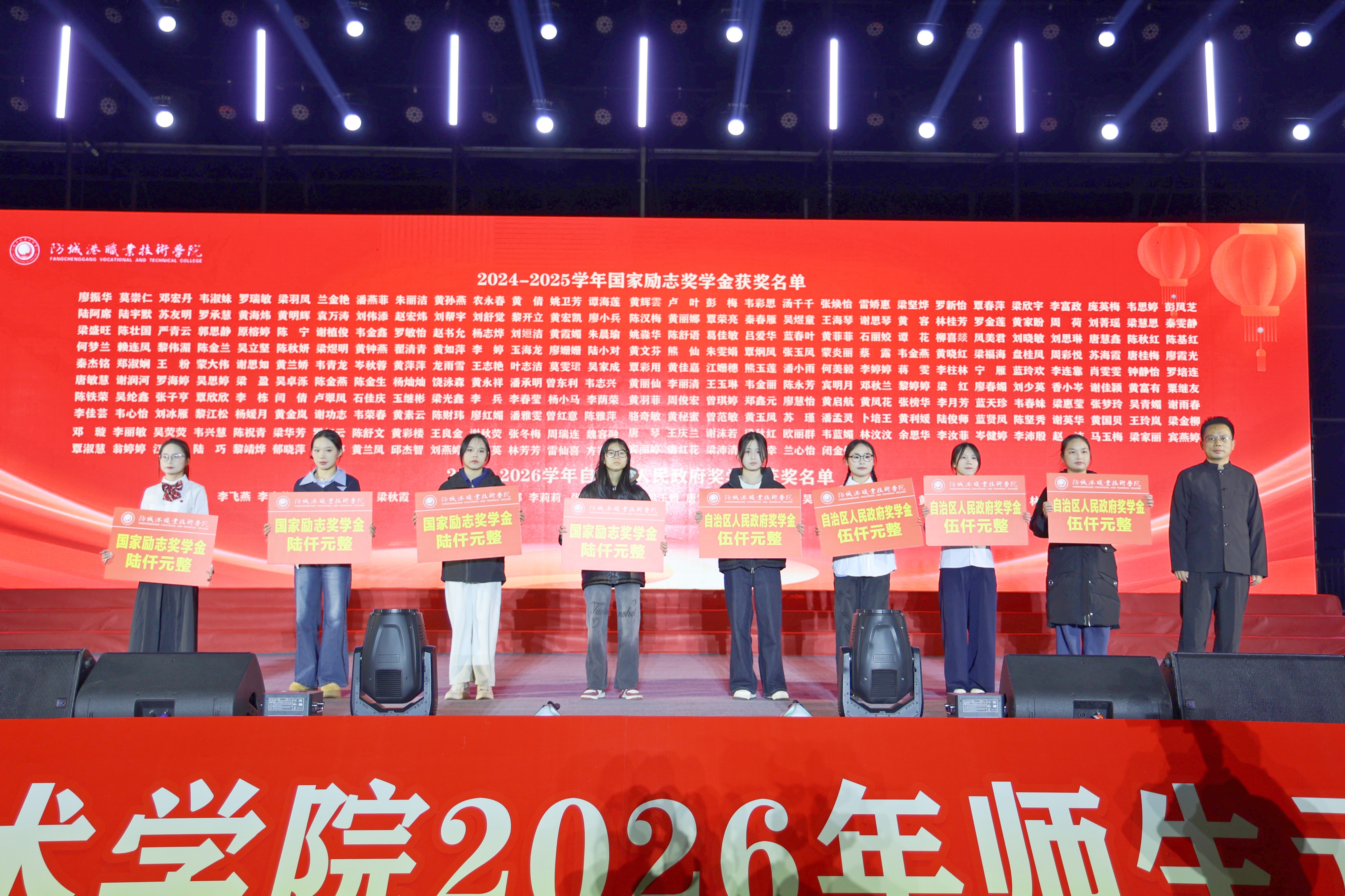 一元复始,万象更新。12月26日晚,我校在田径场隆重举行主题为“一马当先启新程 万象更新绽芳华”2026师生年元旦联欢晚会。市政协副主席、校党委书记陆健文,校长欧阳群东、防城区委宣传部长黎奕福、校领导班子出席,全体在校师生参加晚会。