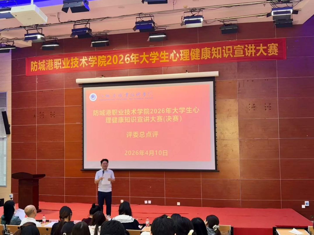 比赛邀请了广西卫生职业技术学院心理中心主任牟坚琼、防城港市心理卫生协会秘书长庄礼程、防城港市第一人民医院临床心理科主治医师颜群以及我校教授黄素梅等担任评委,他们对选手的表现给予充分肯定,并从专业角度提出中肯建议,鼓励同学们持续关注心理健康、提升助人能力。