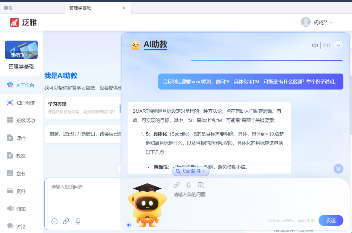 图2 教学环节使用AI助教场景图示