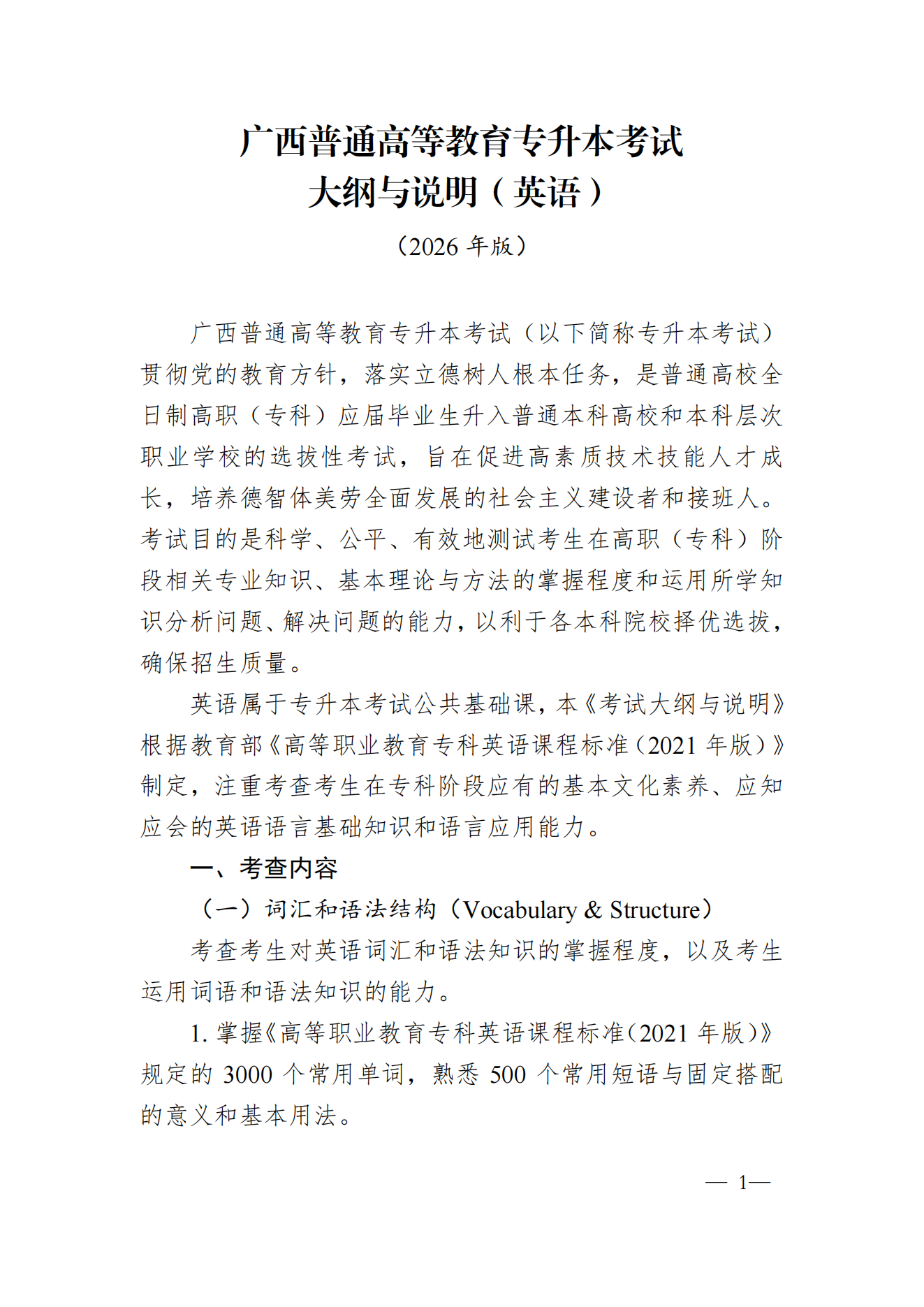 附件:广西普通高等教育专升本考试大纲与说明(英语)2026年版