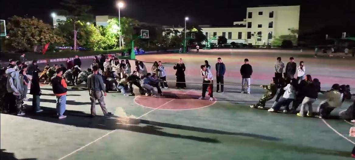军训中的体育运动。在2024级新生军训联谊活动中,体育老师们组织同学们开展拔河、踩高跷、抛绣球、跳竹竿舞等民族体育项目,活动现场一片欢歌笑语。