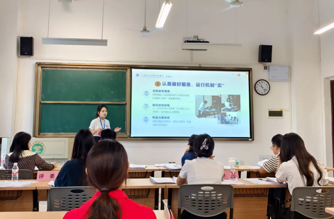 ▲在答辩环节,校学生会代表对项目进行了详细阐述。