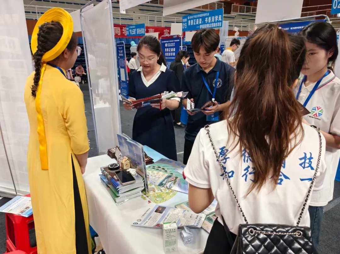 ▲我校项目展位吸引了许多高校师生驻足。