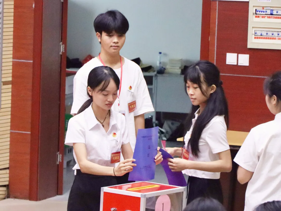 与会代表听取了《大会筹备工作报告》《大会代表资格审查报告》《关于候选人产生经过的说明》《第一届学生会工作报告》,审议并表决通过了《关于<第一届学生会工作报告>的决议》和《大会选举办法》,选举产生了防城港职业技术学院第二届学生会主席团成员以及第二次学生代表大会常任代表。通过民主选举,陆朝江、曾东利、滕媛、覃方入等四位同学当选为第二届学生会主席团成员。