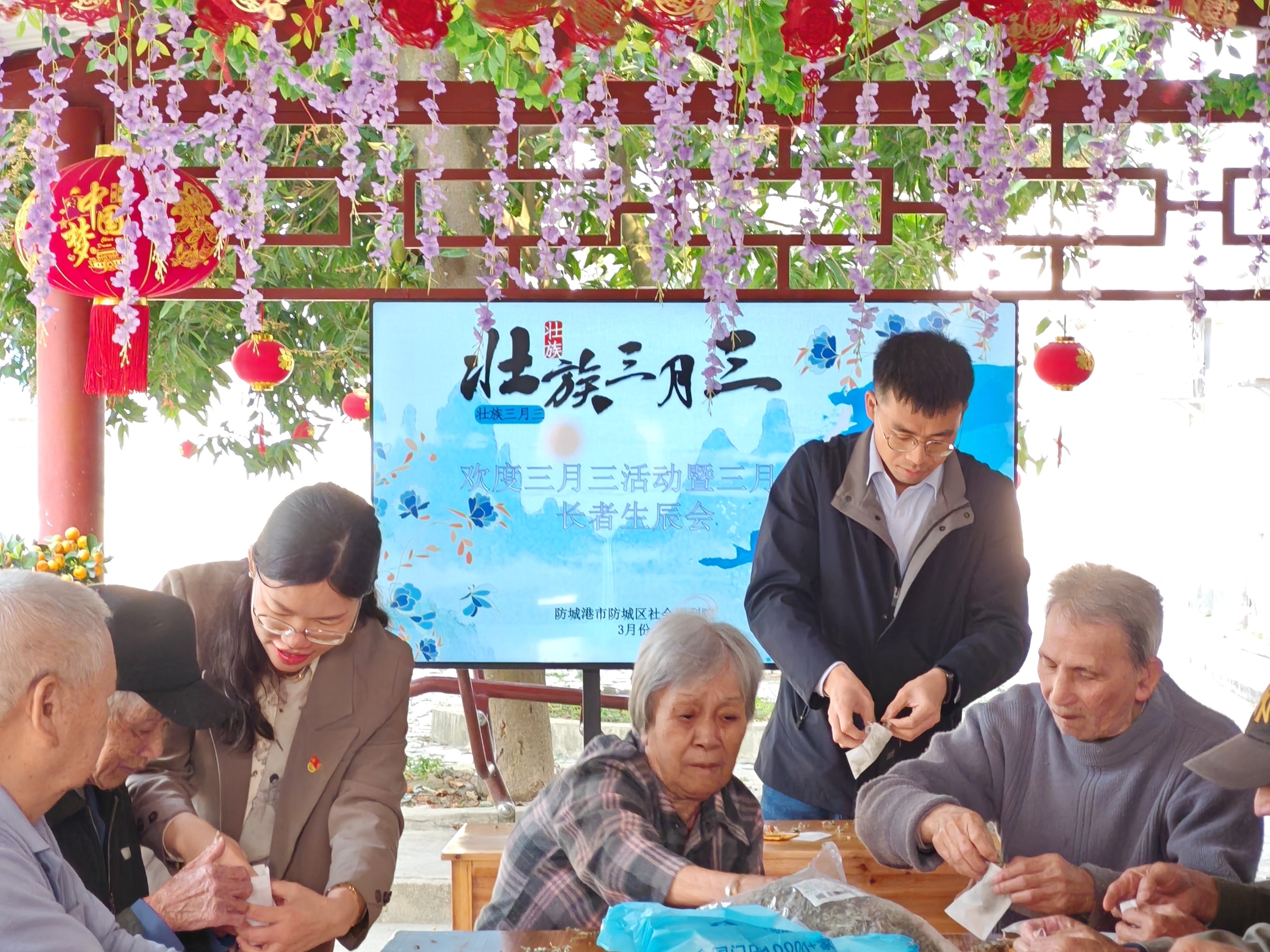 3月25日,防城港职业技术学院医药康养学院党支部联合本学院团支部,走进防城区社会福利院,开展了“党旗飘扬·情暖夕阳——福利院关爱计划”第三期活动。本次活动结合广西壮族传统节日“三月三”,通过民俗文化体验、互动游戏和庆生活动,通过“组织联建、队伍联动、服务联抓”模式,构建起党团协同育人新格局,为福利院老人们送去了温暖与关怀,弘扬了中华民族尊老爱老的传统。