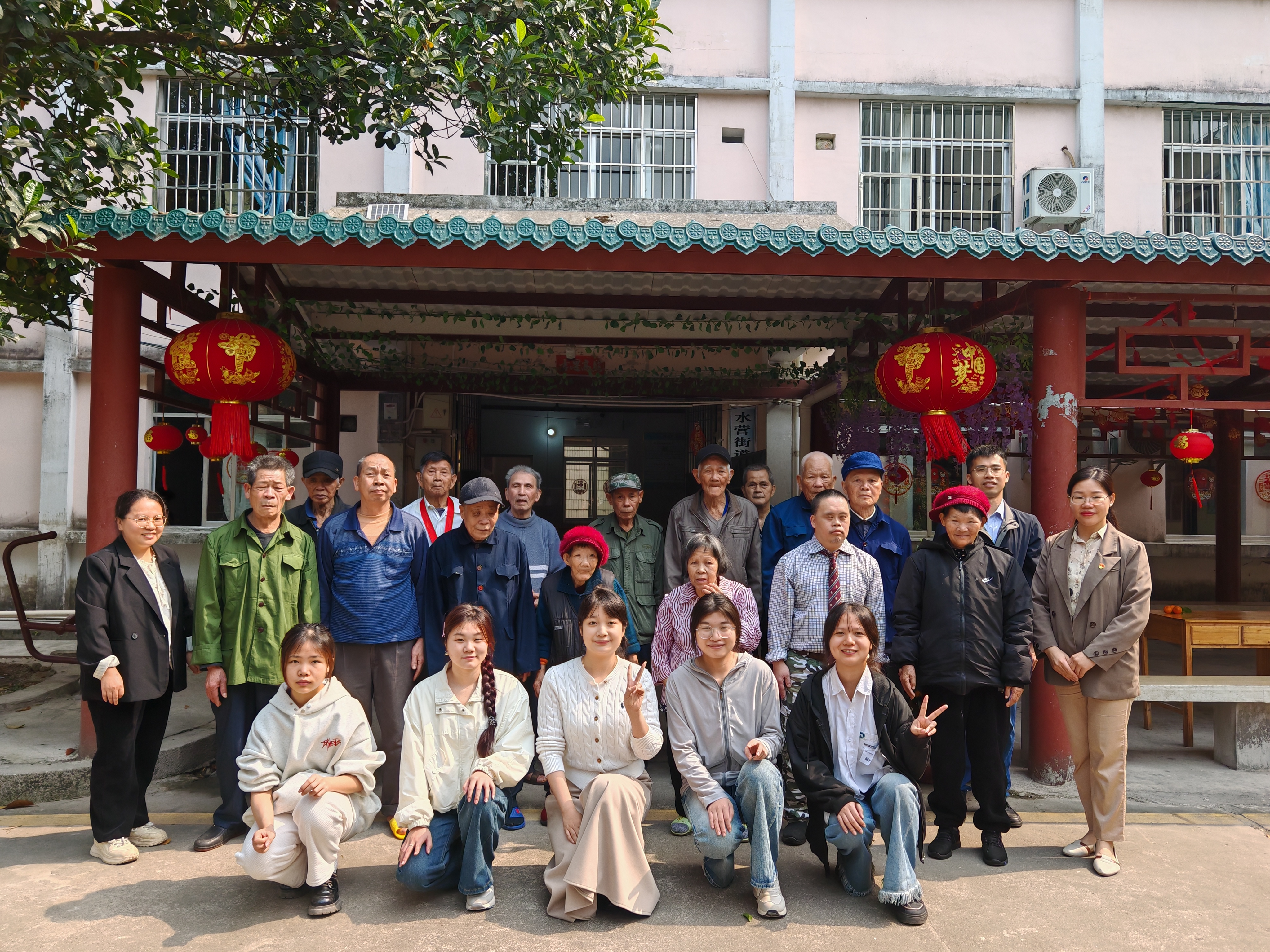 ▲师生们和老人们合影