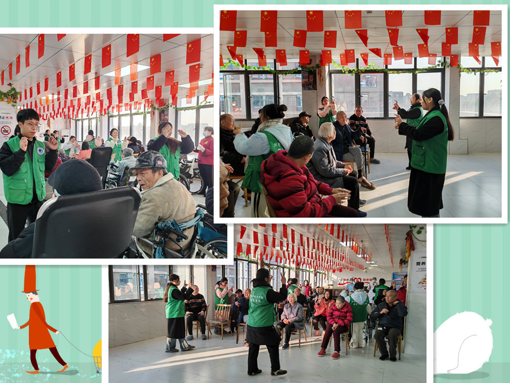活动现场暖意融融,精彩纷呈。在奥尔夫音乐活动环节,医药康养学院康怡老师带领老人们做起趣味手指操,随后指导大家玩转奥尔夫乐器,通过简单的节奏互动、趣味游戏,让老人们在欢快的氛围中放松身心。其他老师和学生志愿者分插到老人身边,耐心协助行动不便的长辈参与活动,现场笑声不断、温情满满。