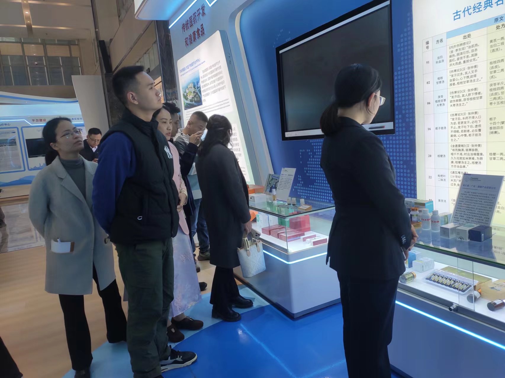 在医学开放试验区展厅,教师们详细听取试验区发展概况介绍,重点关注中医药药品研发最新成果,直观感受医药康养产业的前沿动态与广阔前景。随后,大家前往城市之窗,全方位了解防城港市发展规划,为后续结合区域需求优化教学方向提供参考。