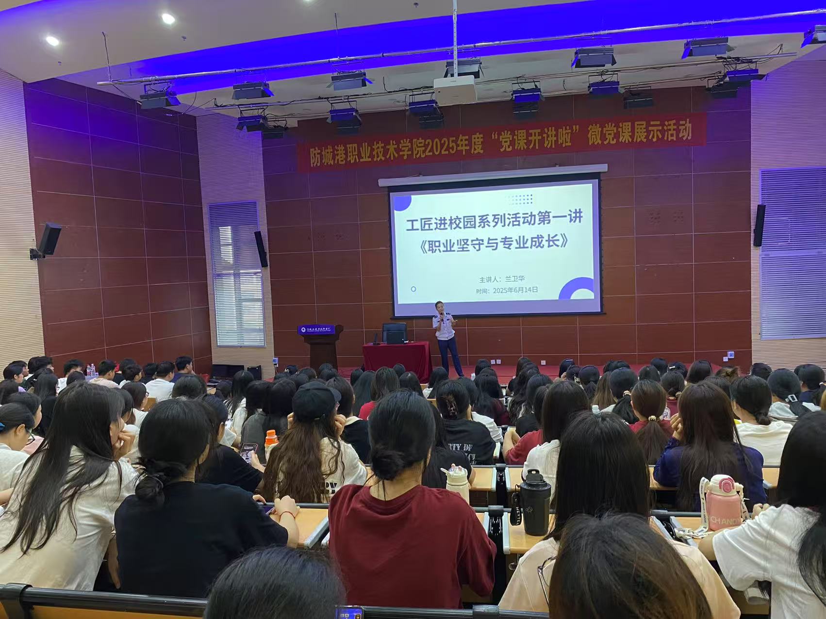为助力学生深入洞察行业动态、明晰岗位定位、把握发展趋势与职业路径,同时深化产教融合、厚植工匠精神,我校医药康养学院于6月14日在我校图书馆二楼报告厅举办“工匠进校园”系列活动。首场讲座《职业坚守与专业成长》特邀南宁急救医疗中心公众培训科负责人、主任护师兰卫华担任主讲,为师生带来一场兼具实践深度与思想高度的行业分享。