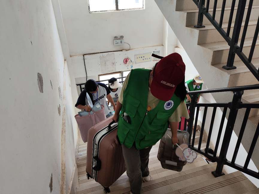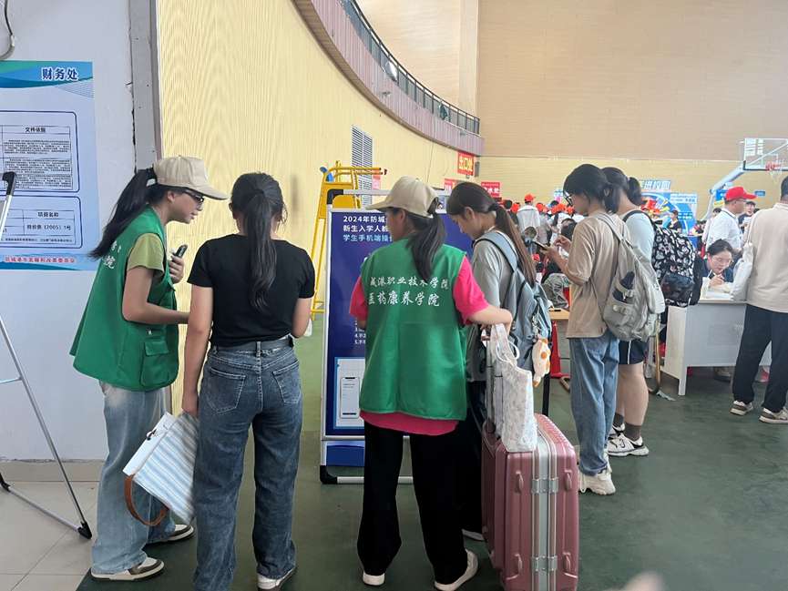 迎新期间,学校统一安排了免费大巴分别奔赴各个站点,医药康养学院的志愿者们穿着统一的绿色马甲,手里拿着指示牌,分别在校门口、体育馆迎接跨越千里、赴山海之约的新生同学们,用自己的行动诠释了“奉献、友爱、互助、进步”的志愿服务精神,用爱心与汗水为小萌们铺就了一条通往梦想的道路。无论是车站的守候,还是宿舍的搬运,亦或是校园的引导,他们的身影无处不在,用实际行动传递着医药康养学院的温暖与力量,让初到港职的学子感受港职院的关怀。校园里,一幅幅迎接新生的红色横幅格外醒目,鼓励新生积极向上,奋勇争先,以崭新的面貌迎接即将到来的大学生活。