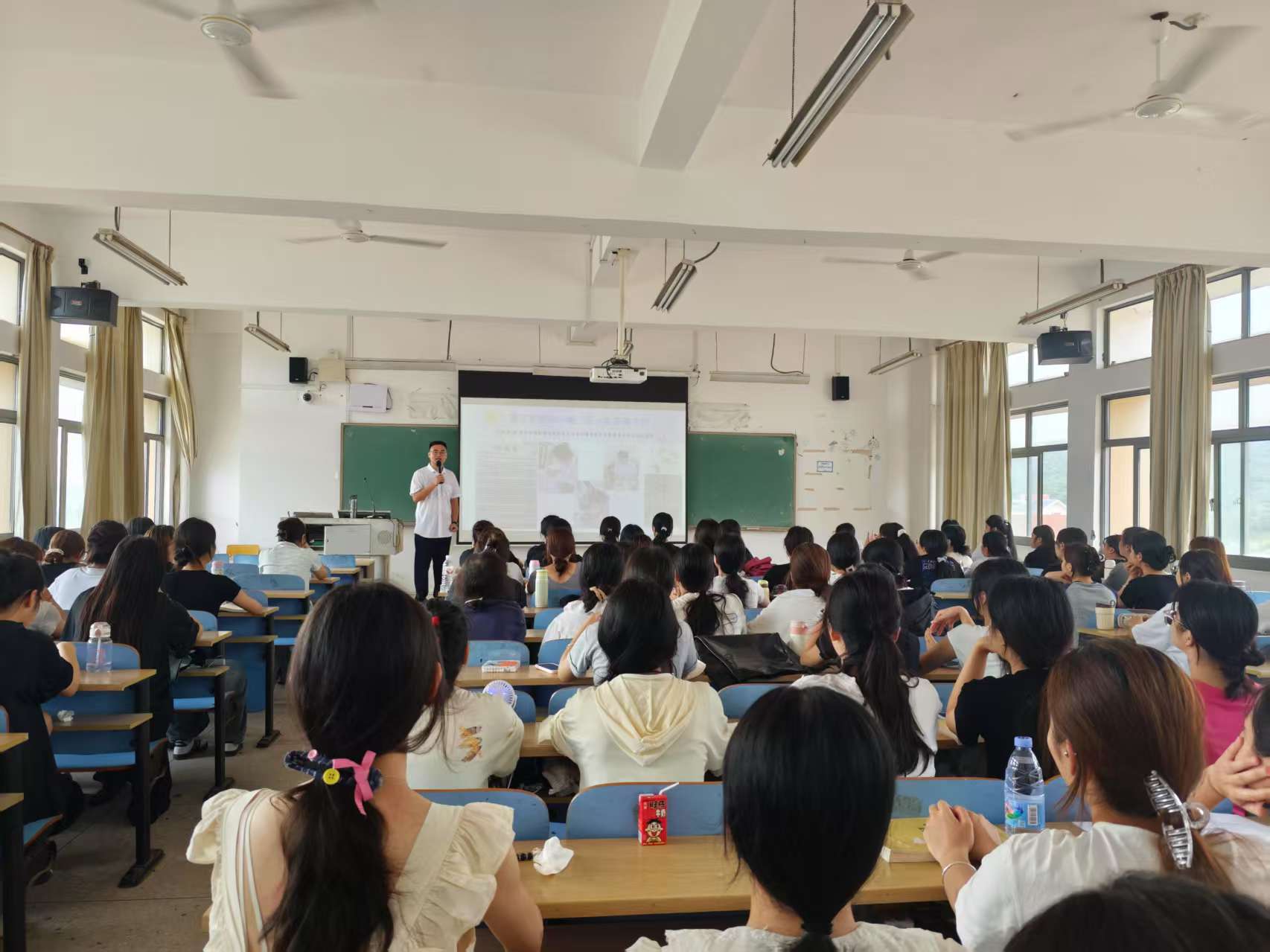 ▲宁丽萍老师给学生们作实习就业典型宣传