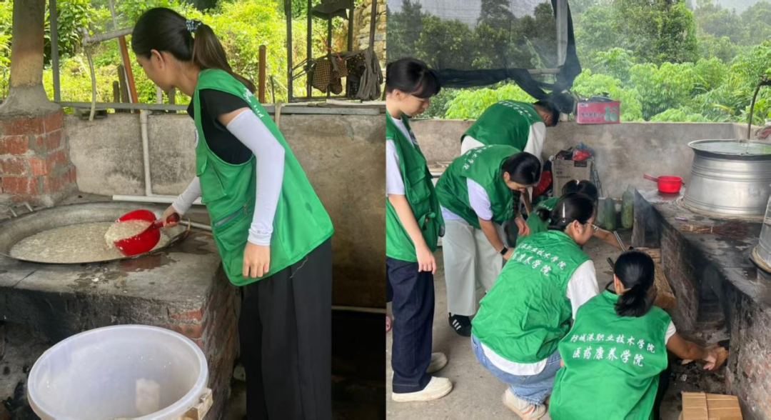 实践团入住村民家中,与村民同吃同住。为拉近与群众的距离,8月29日,实践团与村民们共同制作当地特色的手工糯米糍粑,还与村民们一同准备晚餐。在村民们的帮助与关怀中,同学们对实践地的环境逐渐熟悉。