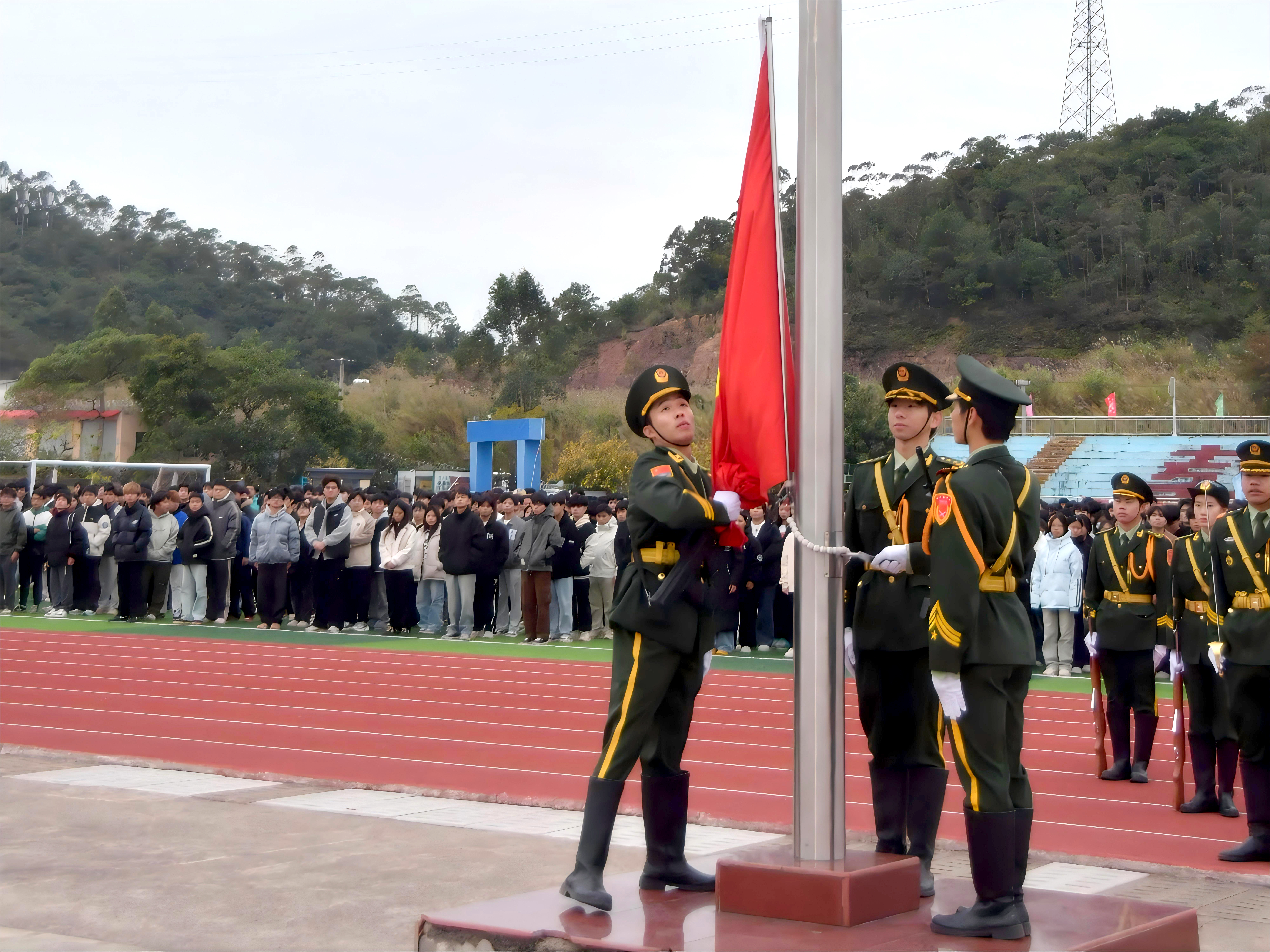 12月16日,智能制造与信息工程学院在校田径场举行升旗仪式暨运动会总结会。